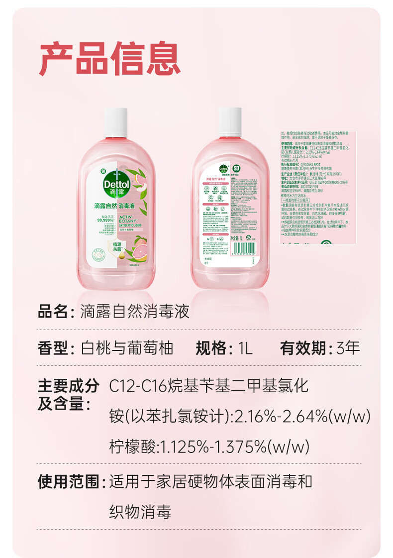 商品名称: 滴露(Dettol)衣物消毒液自然香氛洗衣清洁杀菌除螨除臭48H留香1000ml甲流感 滴露自然消毒液1L/瓶