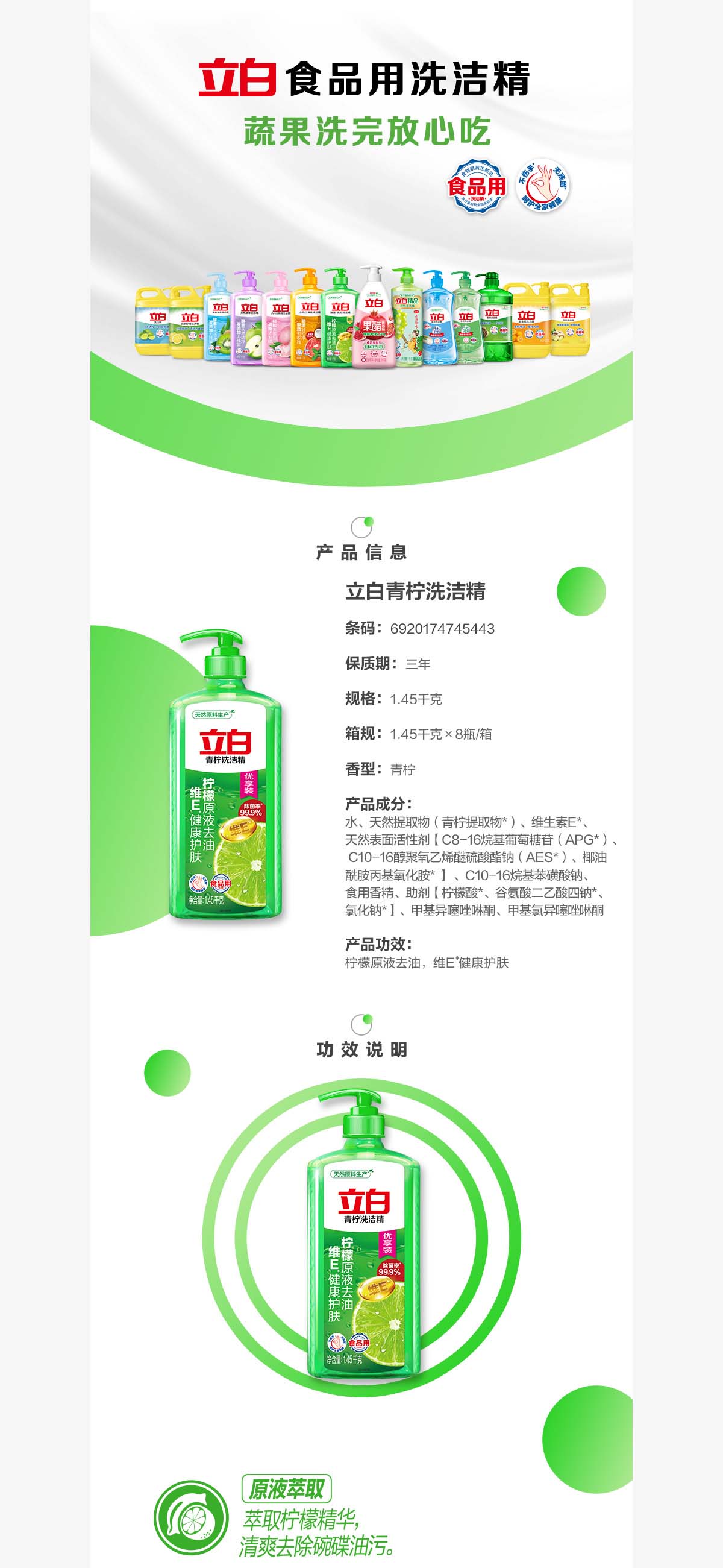 商品名称: 立白爆款青柠洗洁精1450克/瓶 1.45kg/瓶/瓶