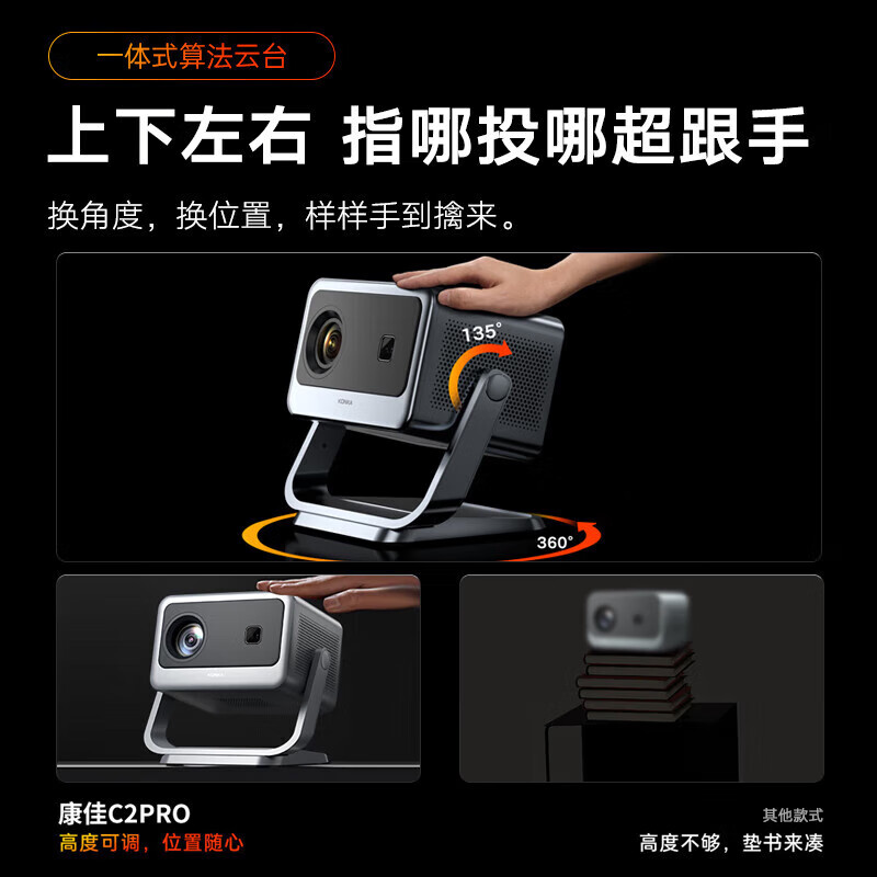 康佳(KONKA)C2pro 云台投影仪家用 高清便捷家庭影院 卧室投影机(自动对焦校正 高亮260lm 360度云台) C2Pro/箱