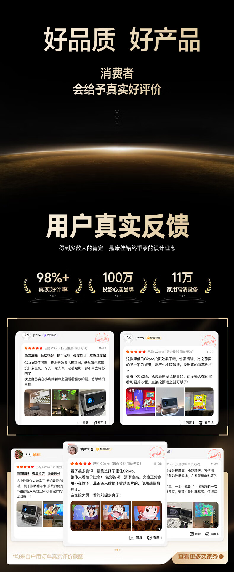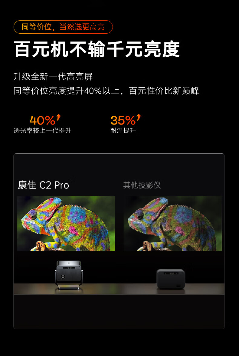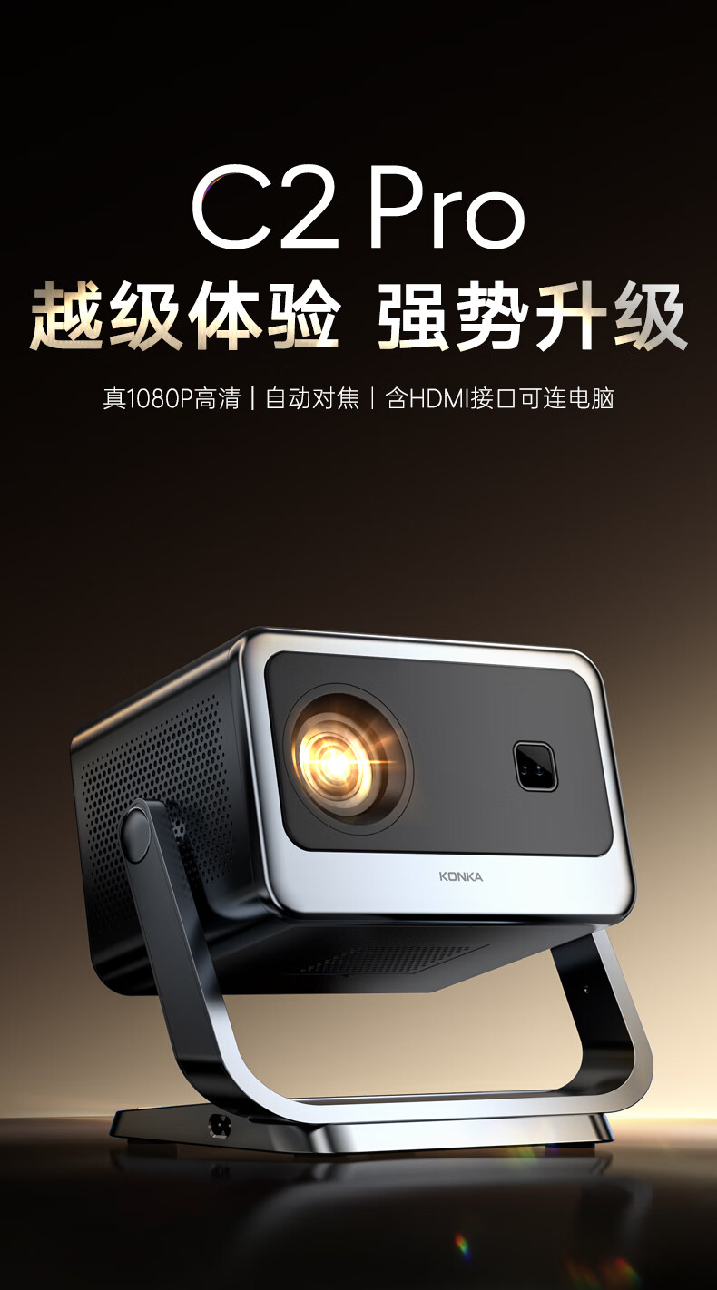 • 商品名称:康佳(KONKA)C2pro 云台投影仪家用 高清便捷家庭影院 卧室投影机(自动对焦校正 高亮260lm 360度云台) C2Pro/箱