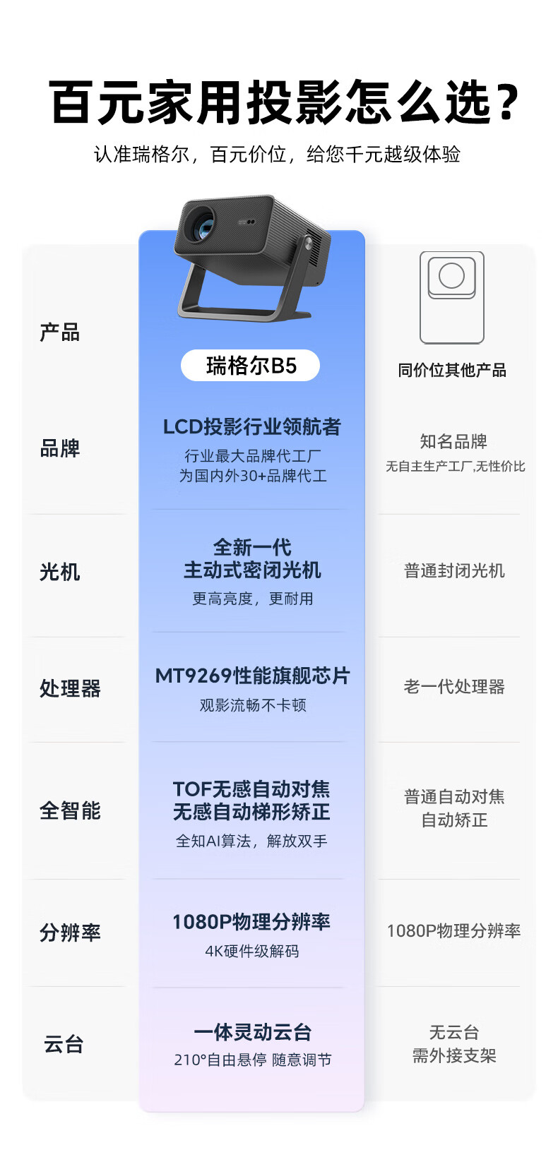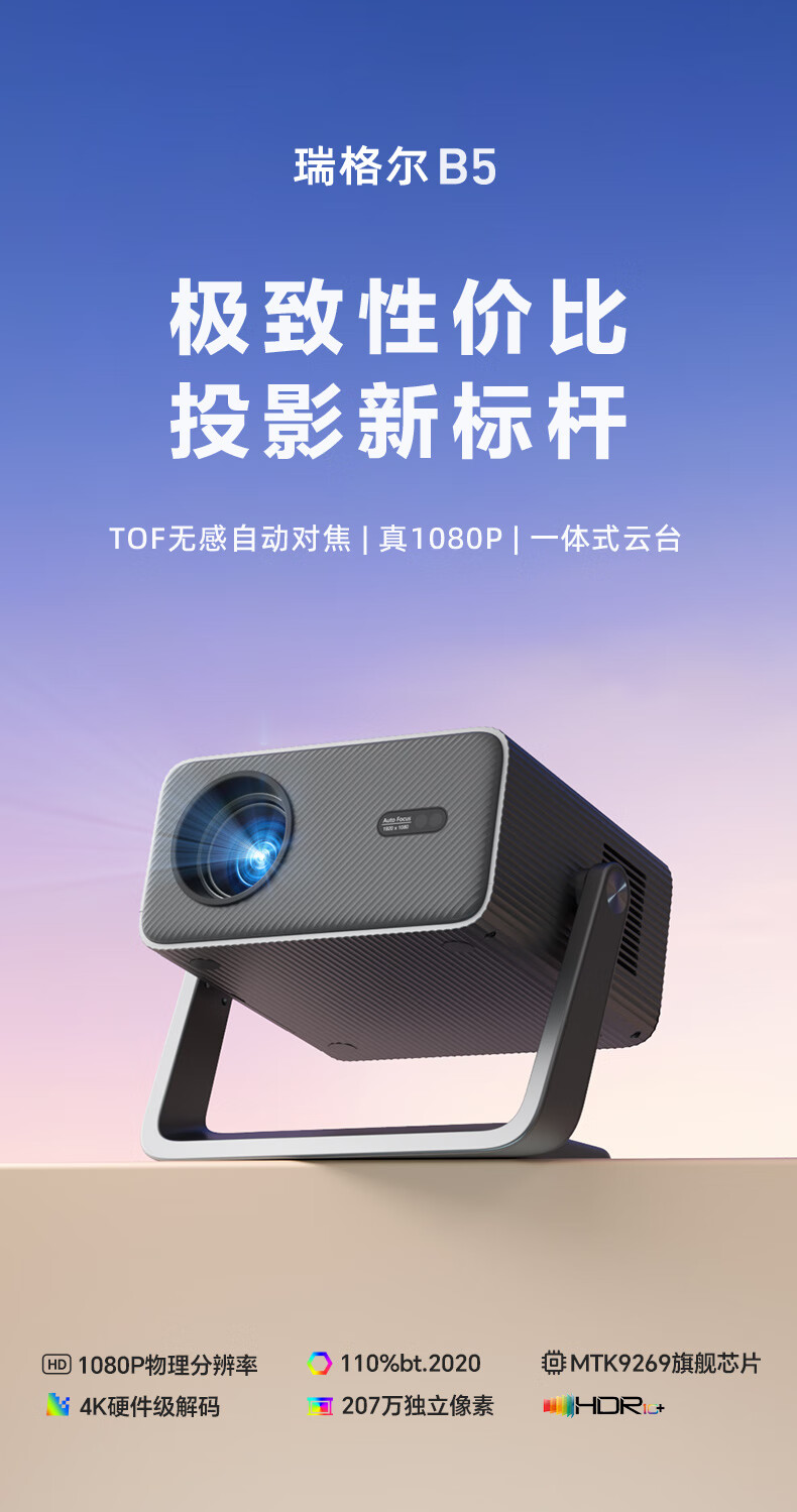 • 商品名称:Rigal(瑞格尔)B5 投影仪家用智能家庭影院一体云台投影机(TOF无感对焦 无感梯形 真1080P分辨率 ) C30A080C/台