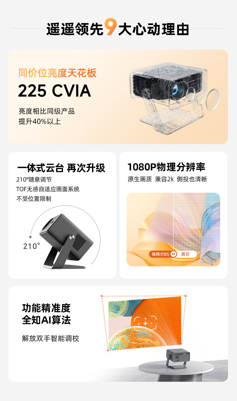 商品名称: Rigal(瑞格尔)B5 投影仪家用智能家庭影院一体云台投影机(TOF无感对焦 无感梯形 真1080P分辨率 ) C30A080C/台
