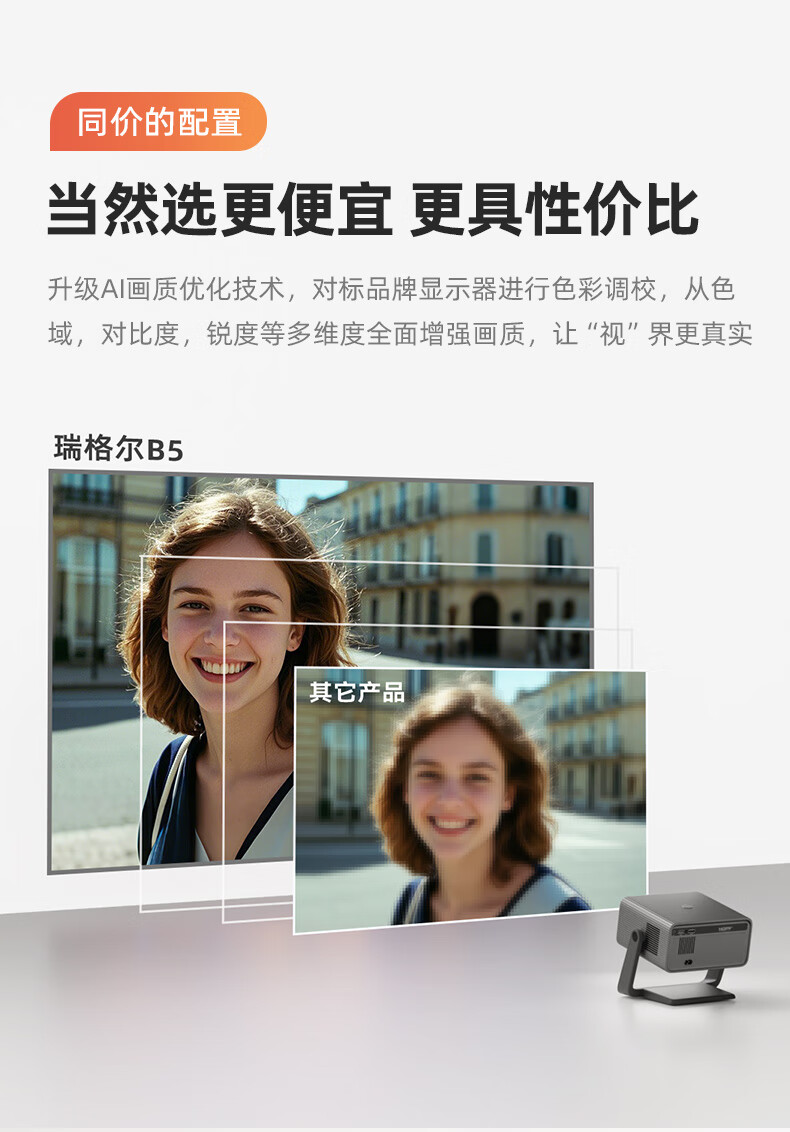 电脑、办公  > 办公设备  > 投影机  >  Rigal  >  Rigal(瑞格尔)B5 投影仪家用智能家庭影院一体云台投影机(TOF无感对焦 无感梯形 真1080P分辨率 ) C30A080C/台