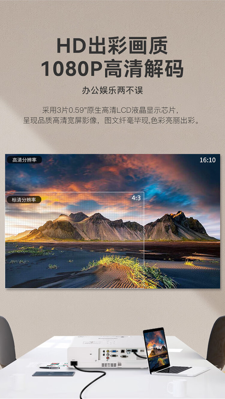 商品名称: 松下(Panasonic)PT-WW3101 投影仪办公家用家庭影院电视客厅卧室 白天培训会议专用投影机(高清WXGA 3300流明) PT-WW3101/台