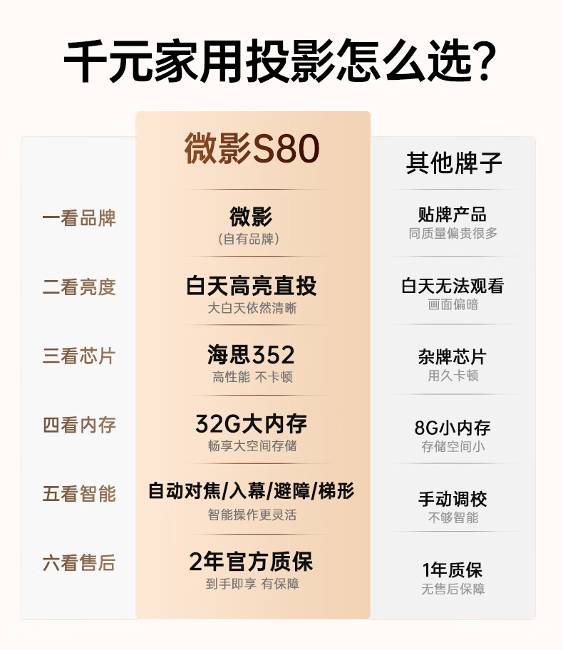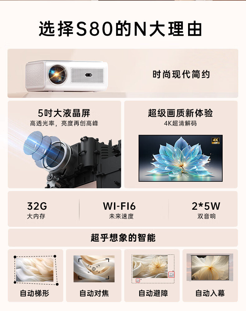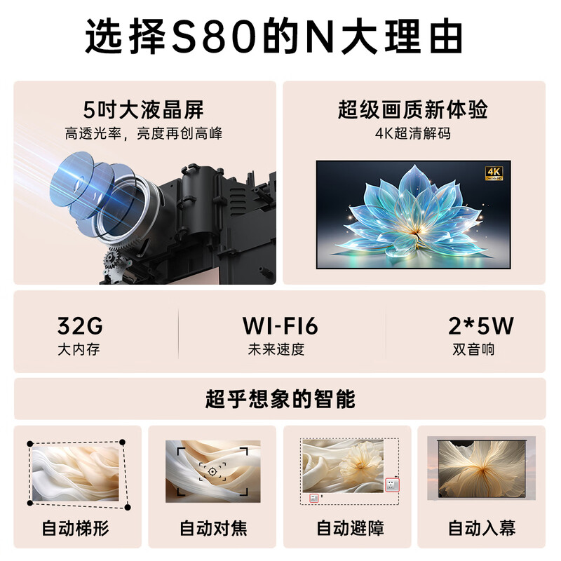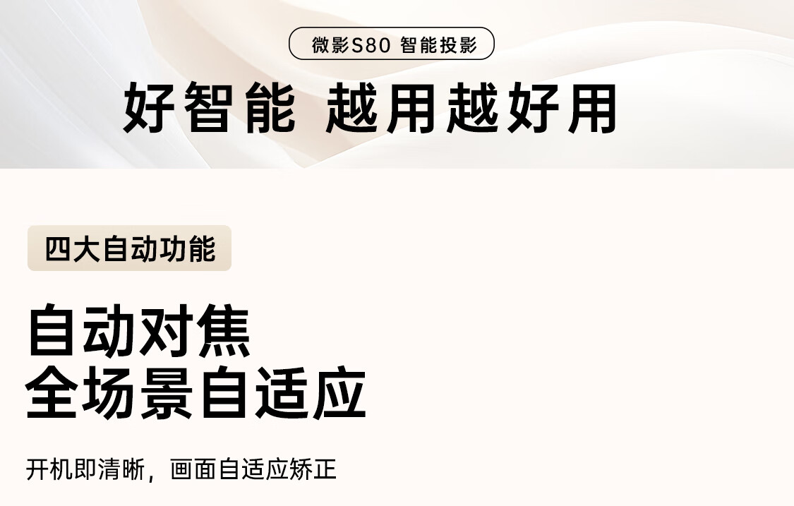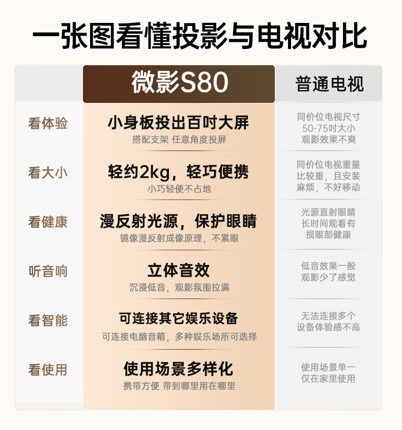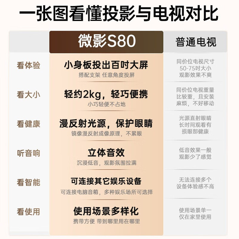 • 商品名称:微影S80投影仪家用 超高清家庭影院 办公会议培训投影机 (真1080P 全自动对焦 高清高亮) S80/台
