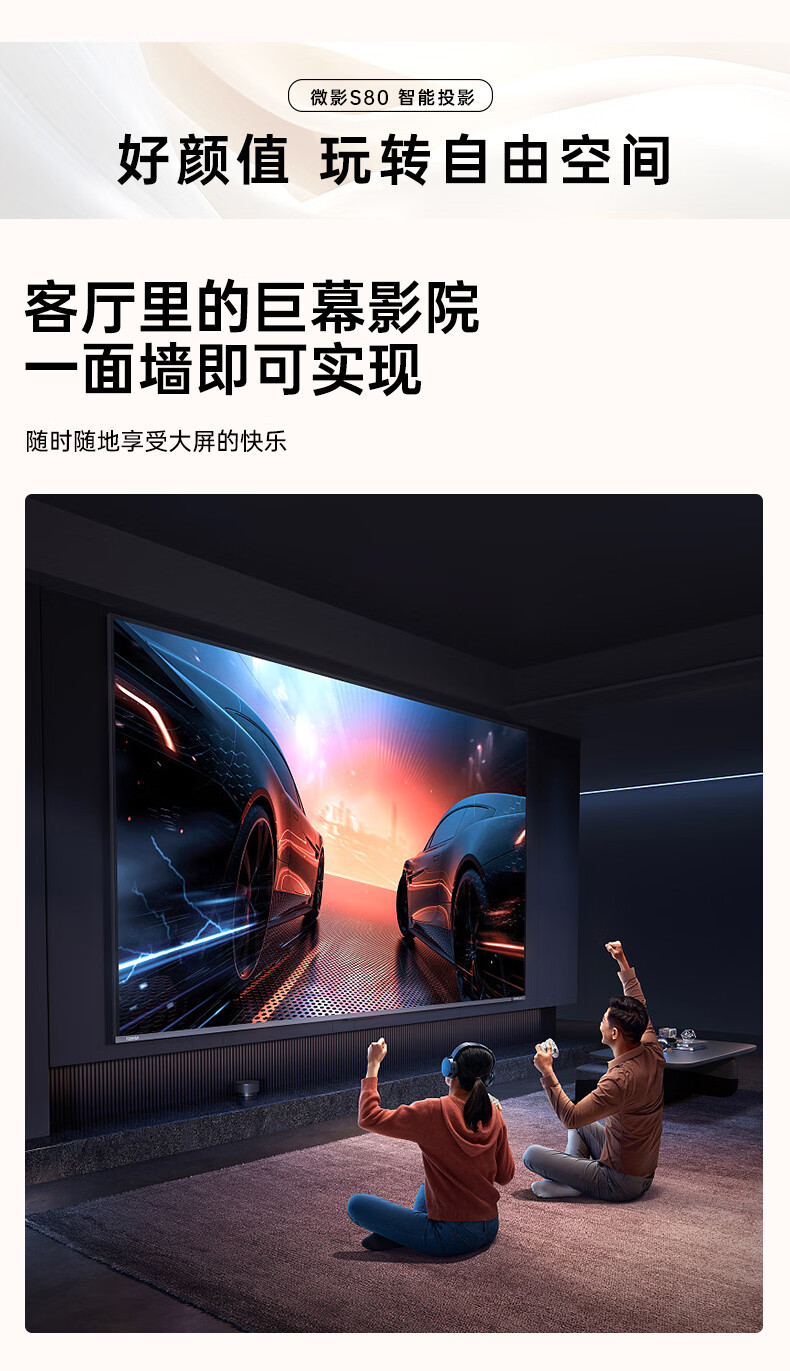 商品名称: 微影S80投影仪家用 超高清家庭影院 办公会议培训投影机 (真1080P 全自动对焦 高清高亮) S80/台
