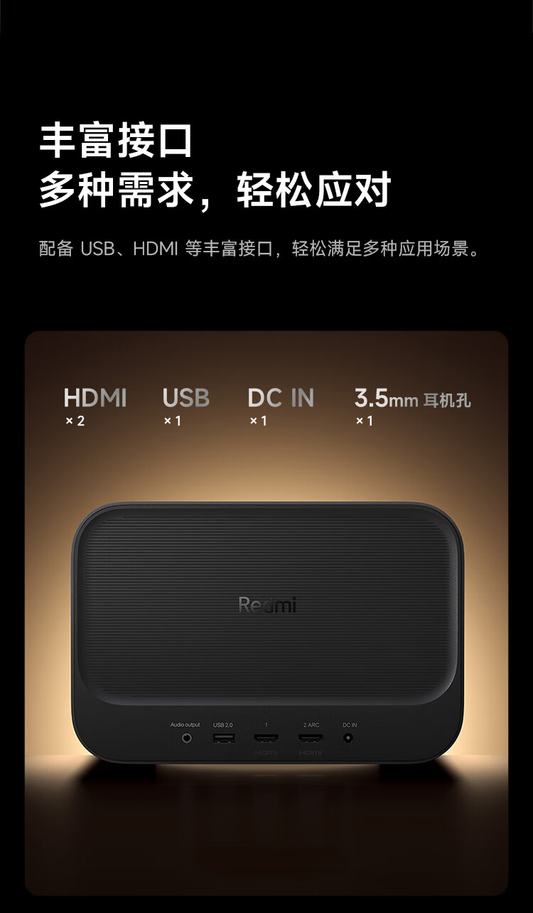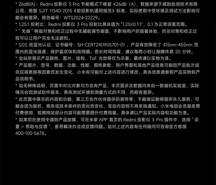• 商品名称:小米Redmi投影仪3 Pro 投影仪家用 智能家庭影院 高清投影仪 无感对焦无感校正 智能避障 远场语音 RMTYY03PYS/台