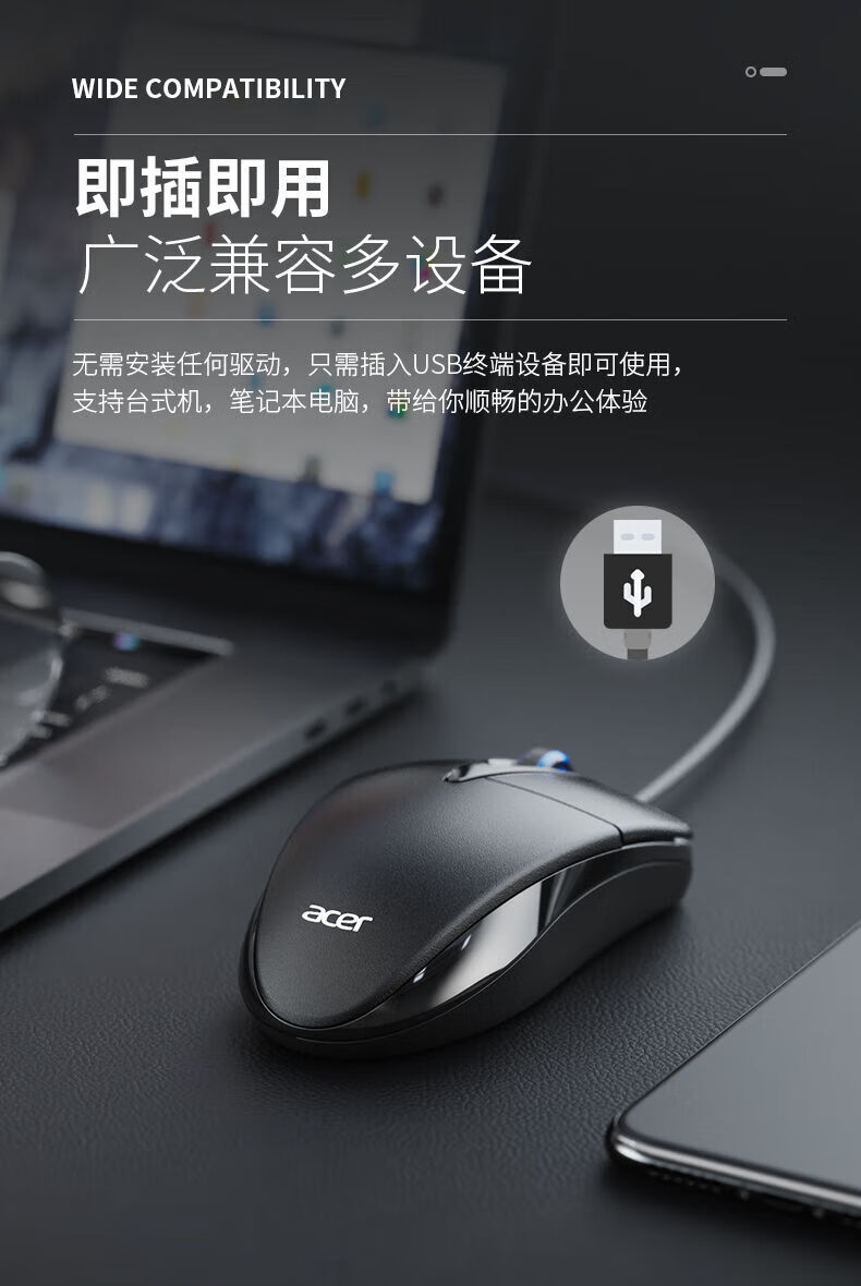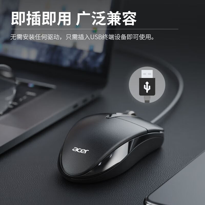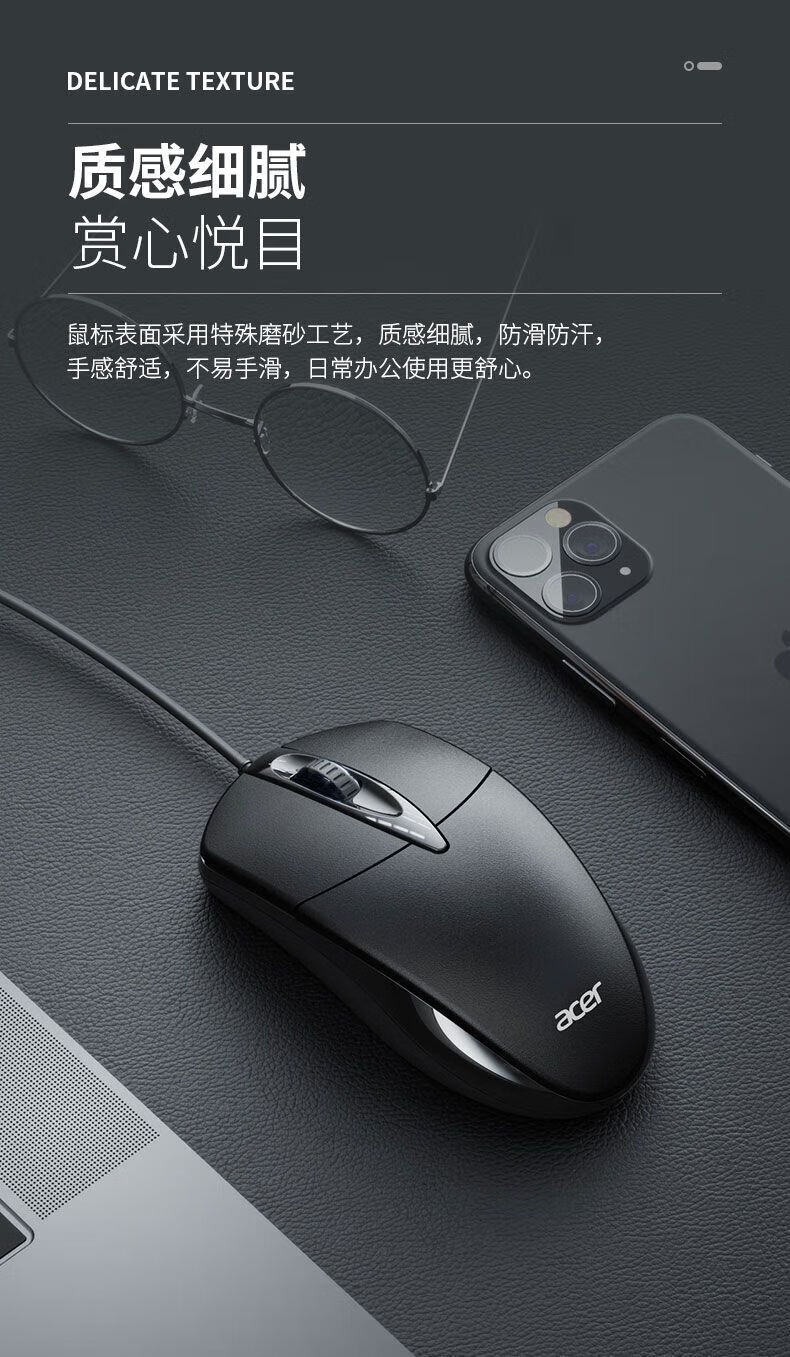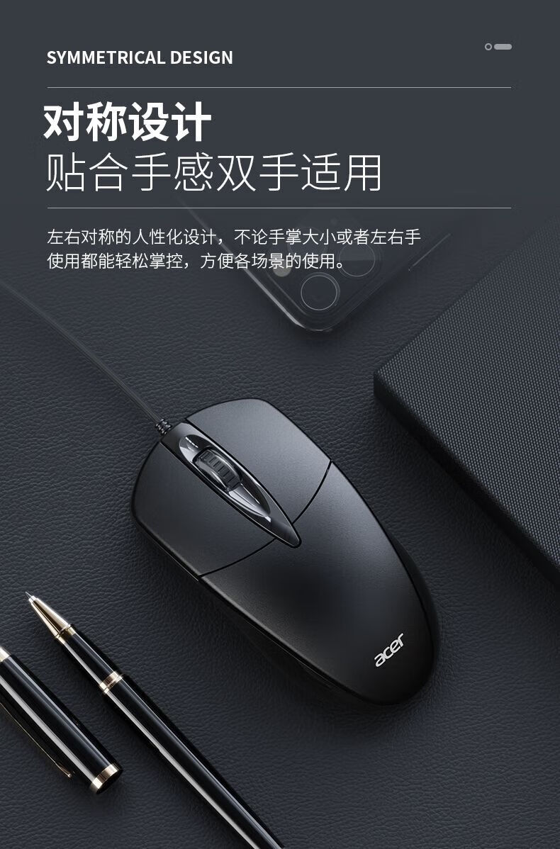 电脑、办公  > 电脑整机  > 台式机  >  宏碁/acer  >  宏碁优跃 M119无声黑色鼠标 优跃/台
