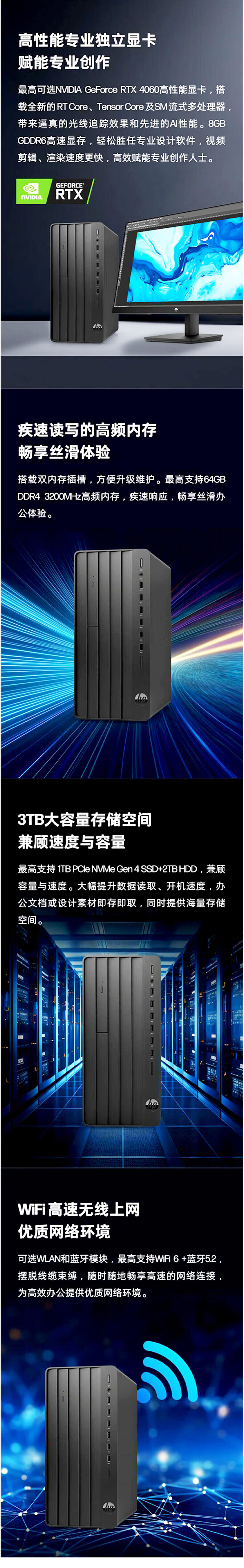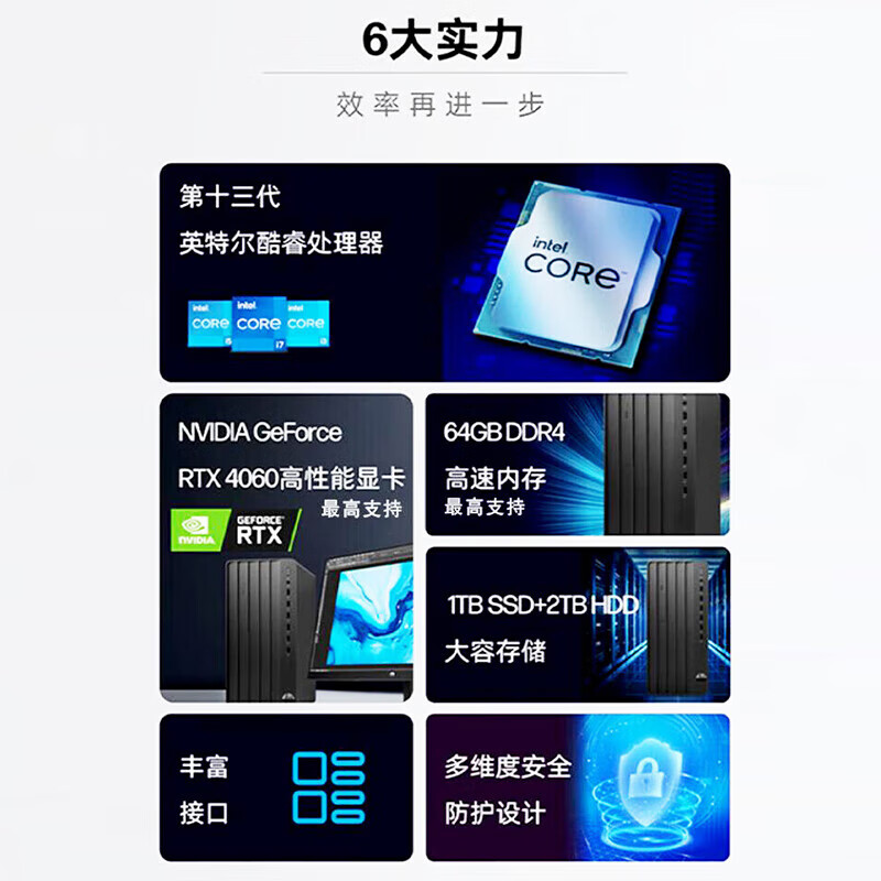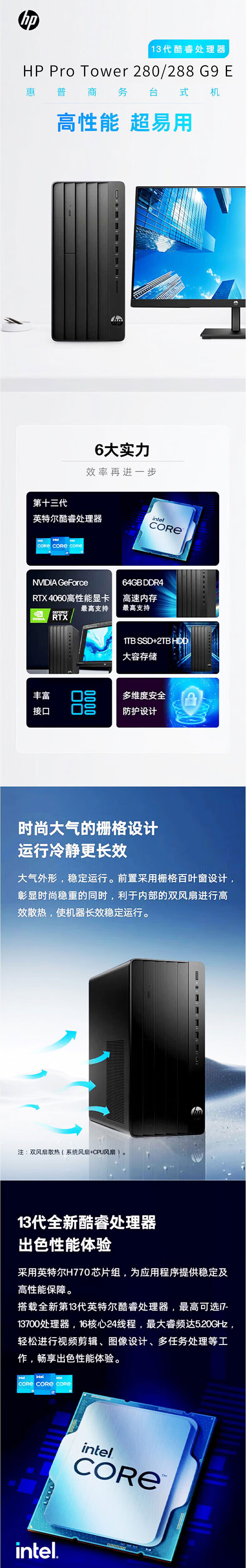 • 商品名称:惠普台式机280/288G9 E 13代商用办公台式电脑主机(i7-13700 64G 1TSSD+2T/1650 4G WiFi)定制 280G9 E/台