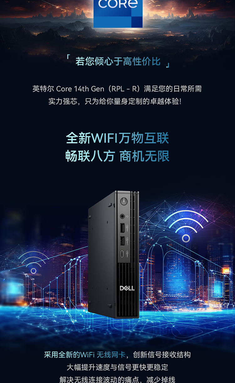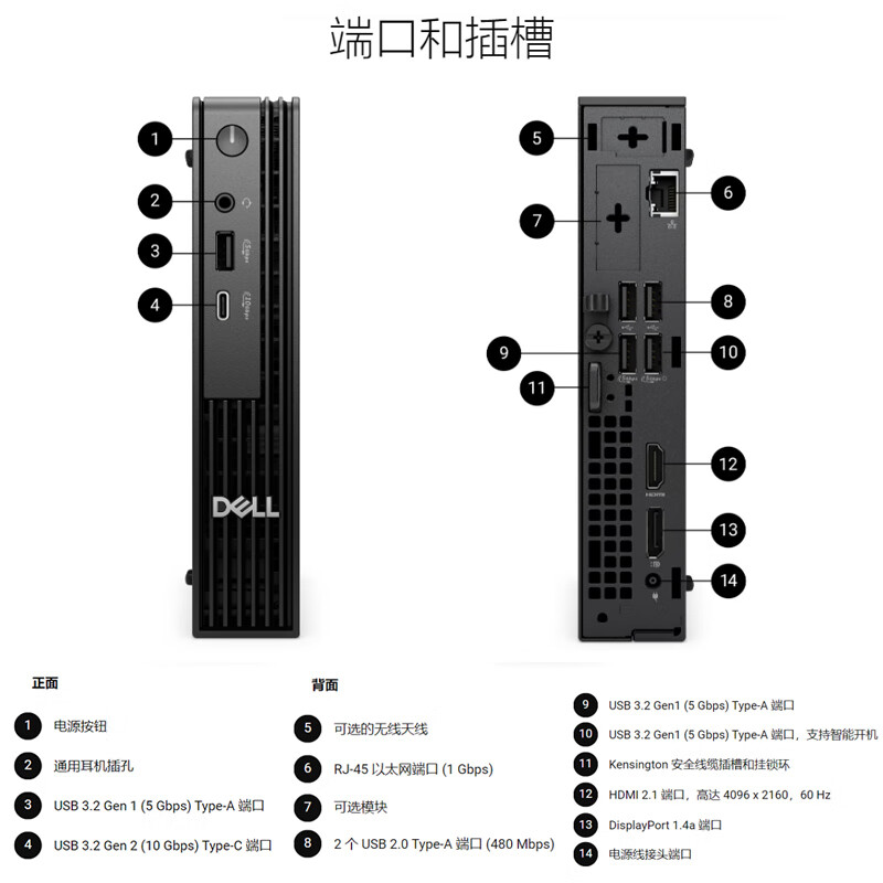 • 商品名称:戴尔(DELL)Pro迷你主机高性能商用办公台式机QCM1250(i5-14500T 32G 2TB固态 蓝牙WiFi )23.8英寸 定制 QCM1250/台