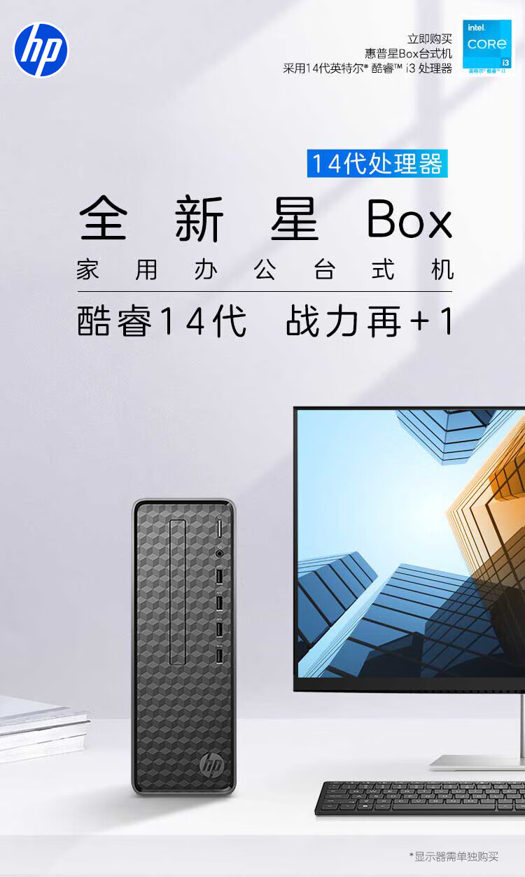 商品名称: 惠普(HP)星Box商用台式电脑商务办公台式机 (14代i3-14100 16G 1TBSSD WiFi Office)单主机 N01/台
