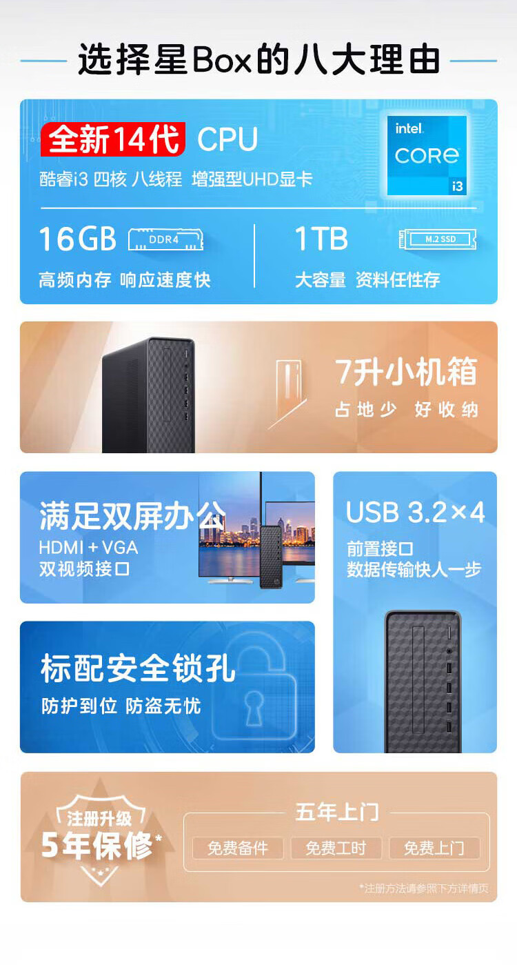 惠普(HP)星Box商用台式电脑商务办公台式机 (14代i3-14100 16G 1TBSSD WiFi Office)单主机 N01/台