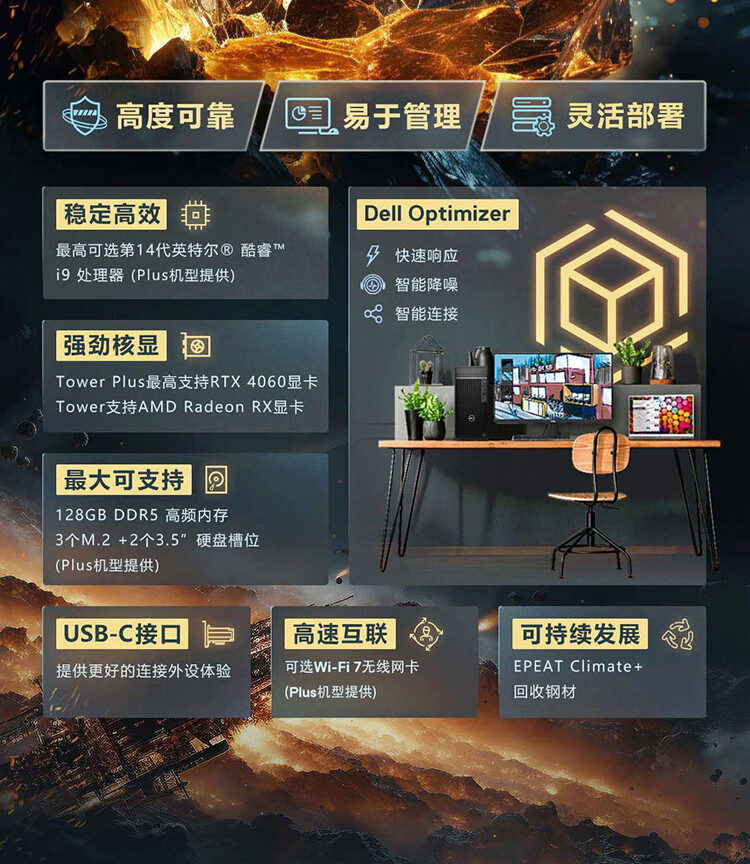 戴尔(DELL)OptiPlex7020MT PLUS商用台式电脑主机i7-14700/32G/1T/GTX1650-4G+27英寸显示器/wifi定制 戴尔OptiPlex/台