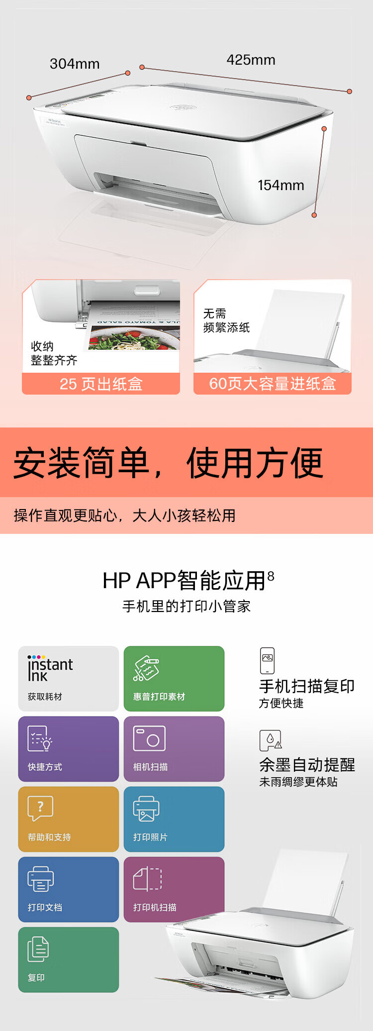 商品名称: 惠普(HP)4925彩色无线喷墨打印机家用 大印量低成本照片打印机 微信打印 复印 扫描 4925/箱