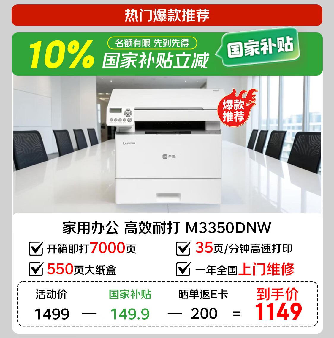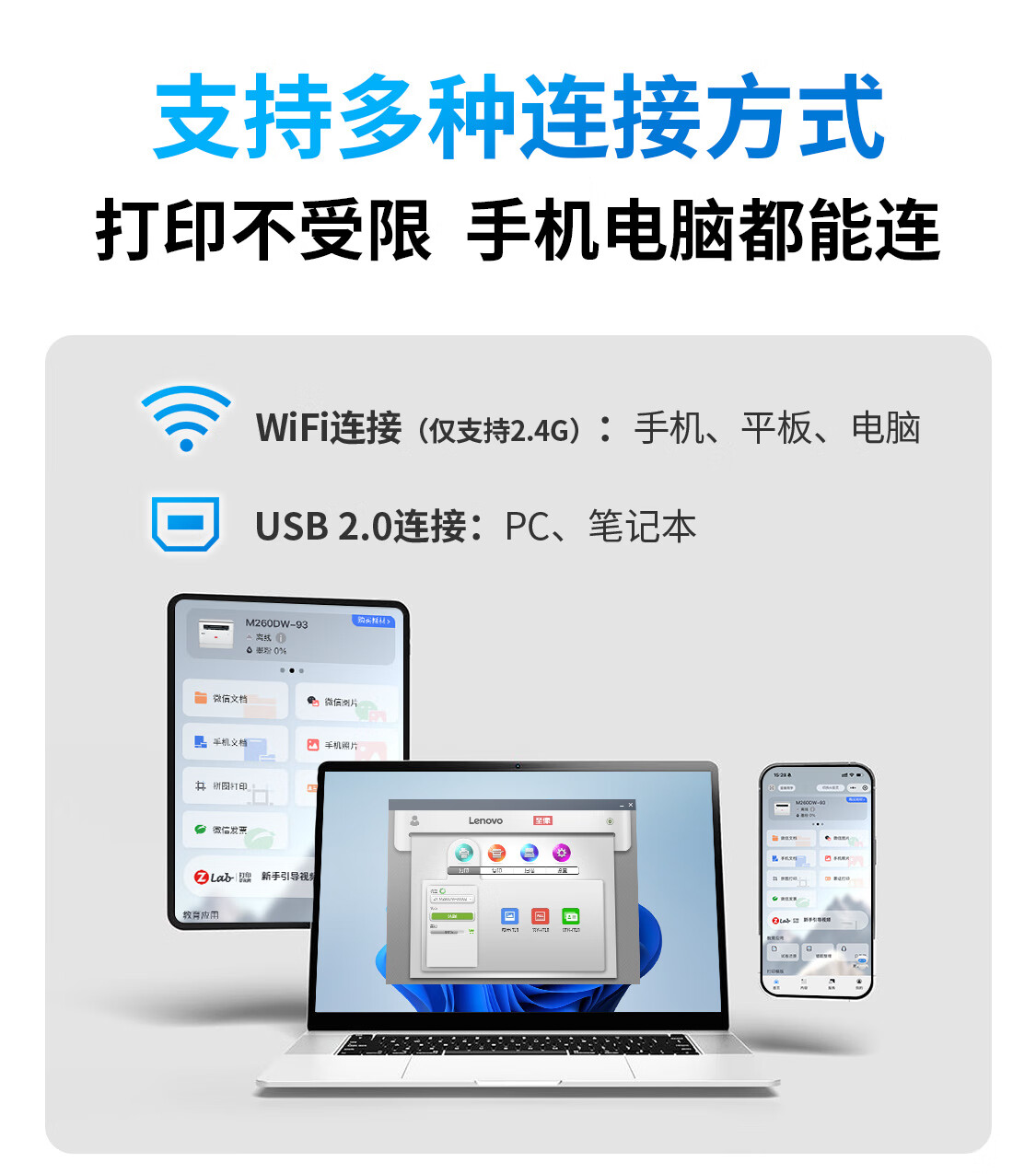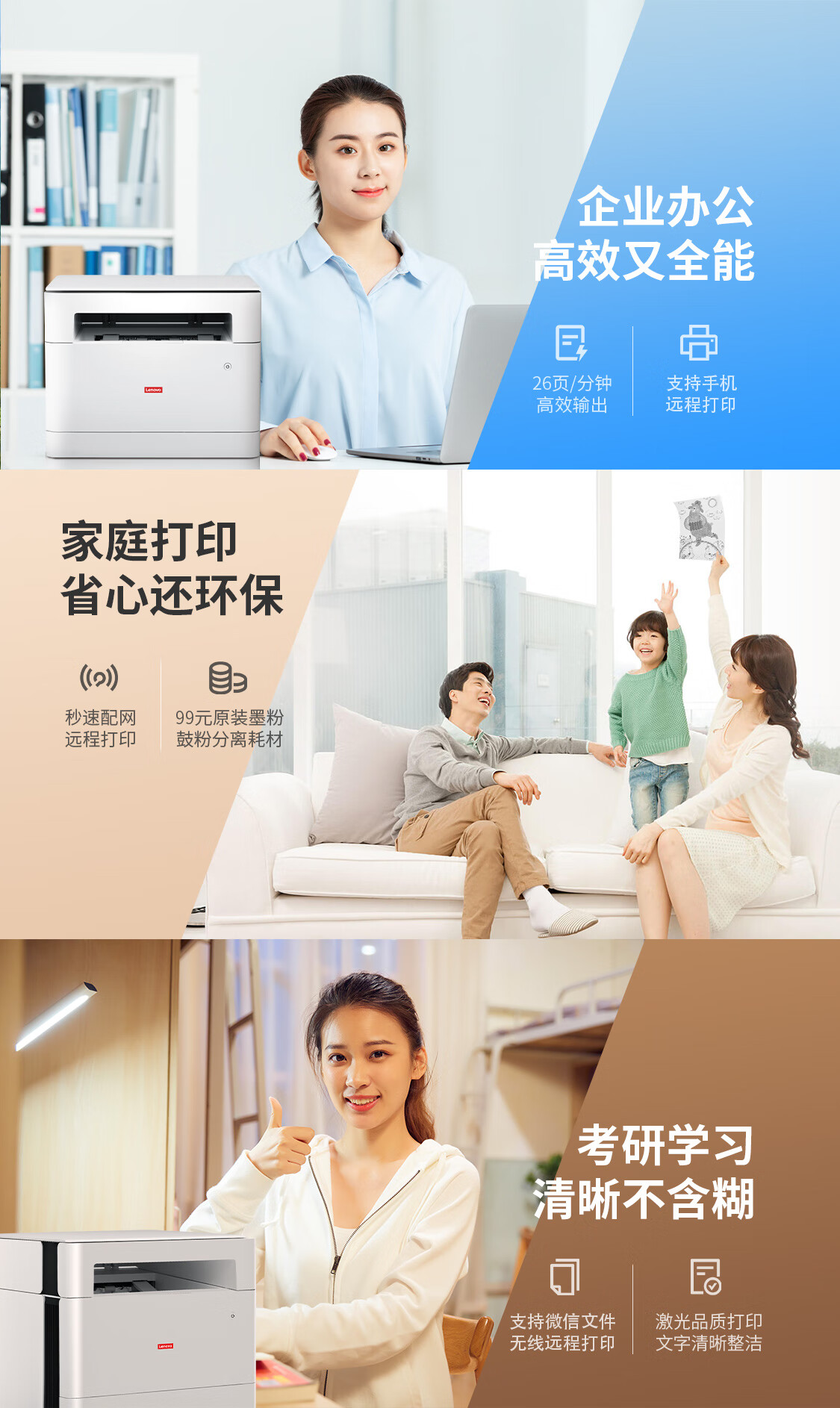 • 商品名称:联想(Lenovo)至像M1520W Pro 激光打印机家用办公 学生学习作业家庭打印机 手机无线打印机复印扫描一体机 Z26-M1520W Pro/台