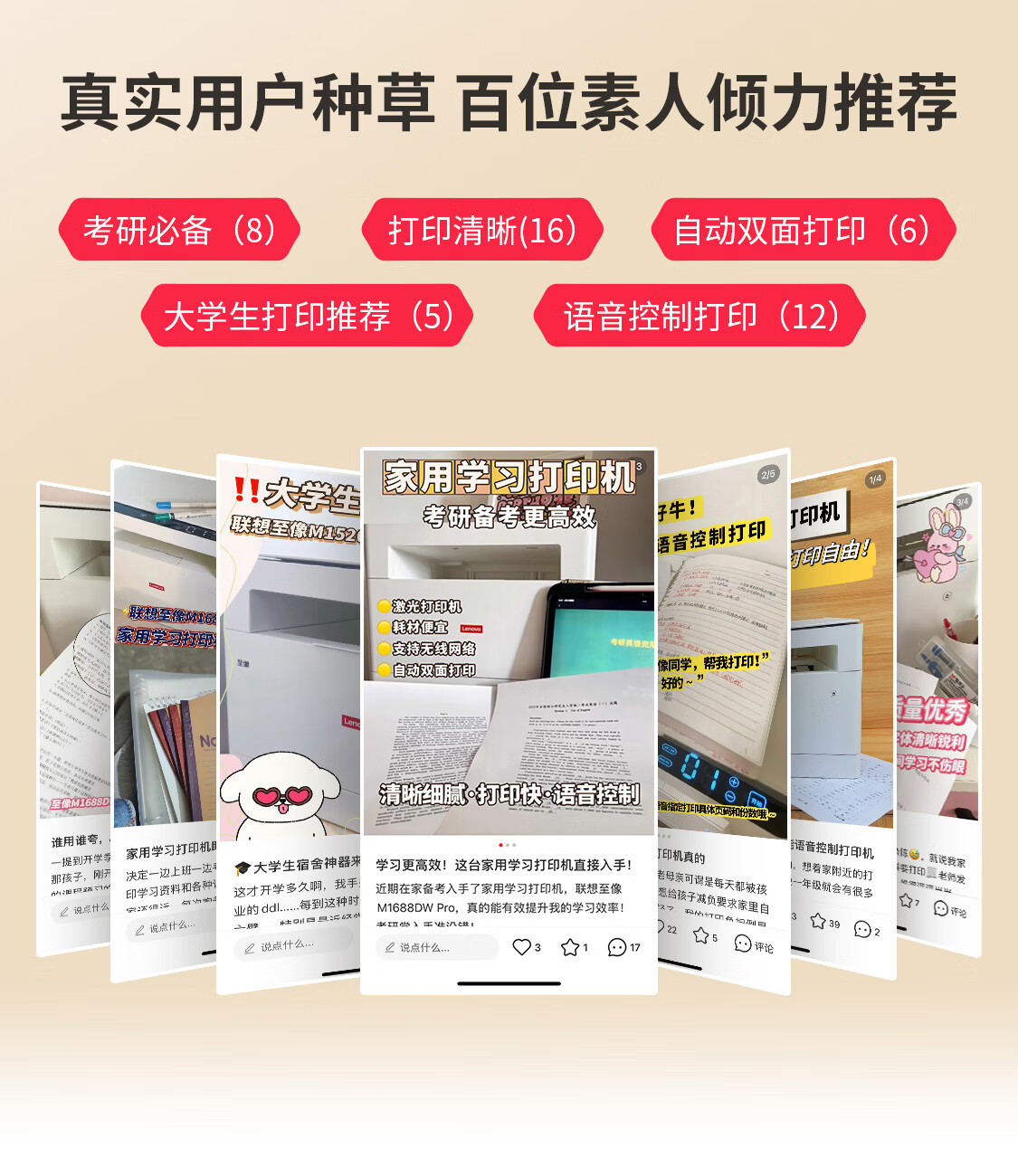 电脑、办公  > 办公设备  > 激光打印机  >  联想/ThinkBook  >  联想(Lenovo)至像M1520W Pro 激光打印机家用办公 学生学习作业家庭打印机 手机无线打印机复印扫描一体机 Z26-M1520W Pro/台