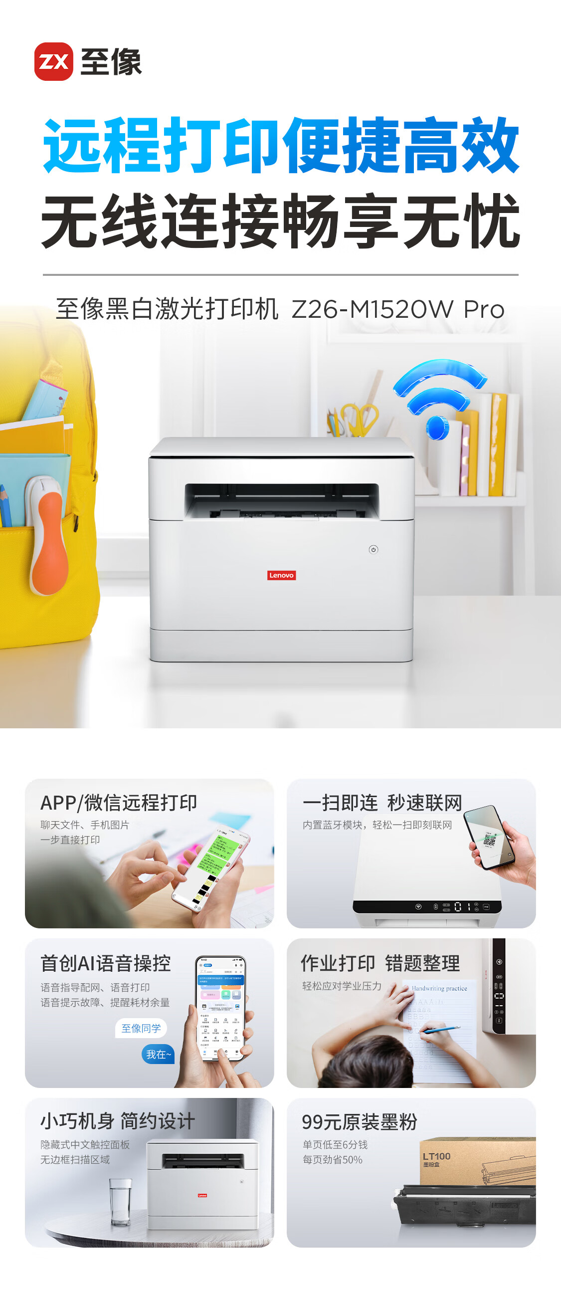 商品名称: 联想(Lenovo)至像M1520W Pro 激光打印机家用办公 学生学习作业家庭打印机 手机无线打印机复印扫描一体机 Z26-M1520W Pro/台
