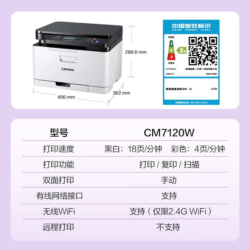 • 商品名称:联想(Lenovo)至像CM7120W 彩色激光打印机 打印复印一体机 无线+有线网络 办公家用学习 CM7120W/台
