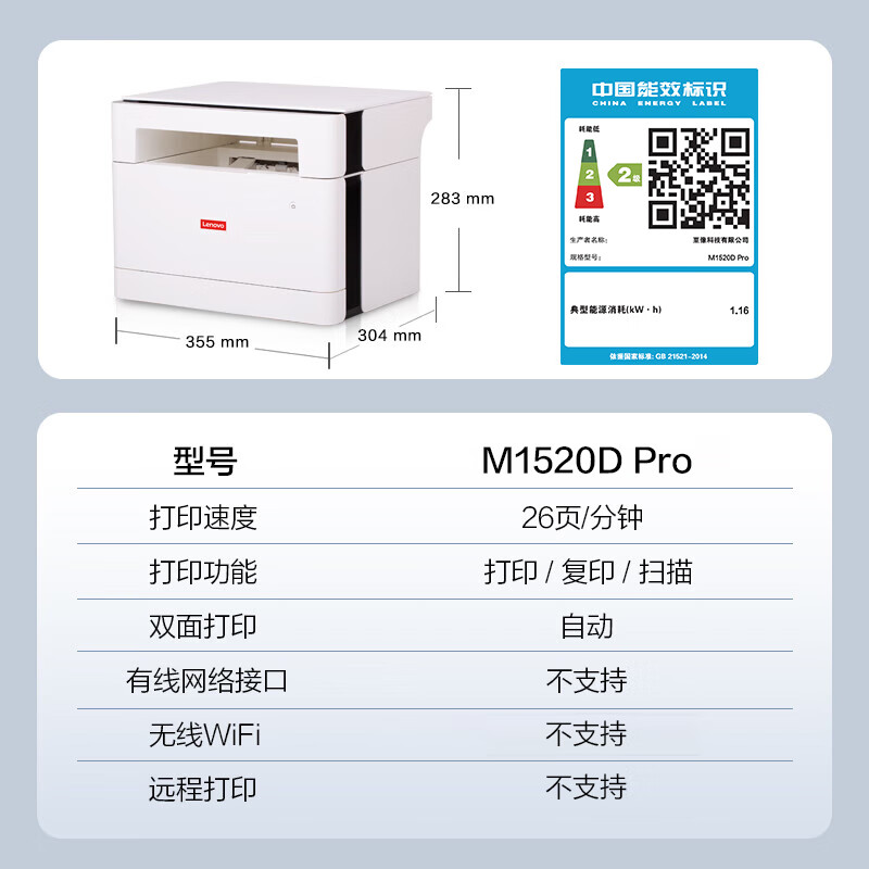 电脑、办公  > 办公设备  > 激光打印机  >  联想/ThinkBook  >  联想(Lenovo)至像M1520D Pro 激光打印机家用办公 学生学习作业错题家庭打印机 自动双面打印复印扫描一体机 Z26-M1520D Pro/台
