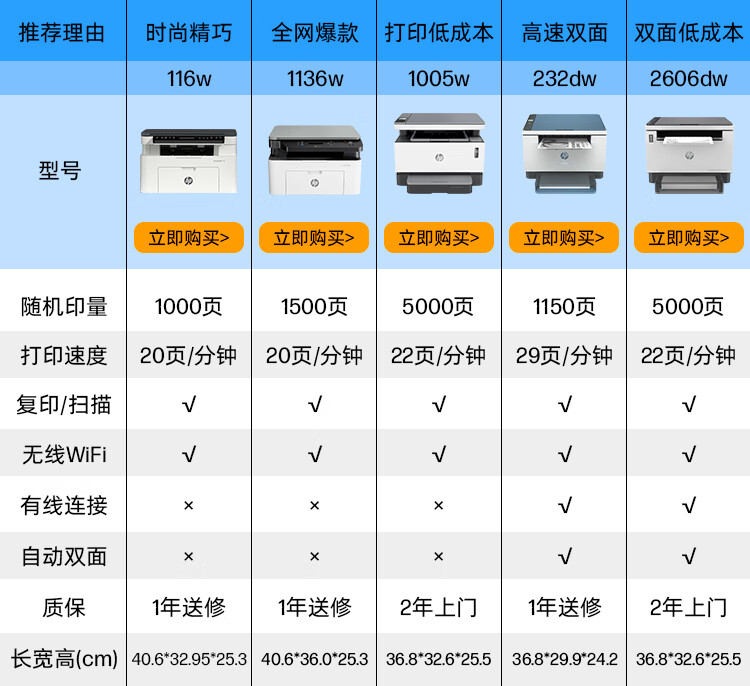包装清单: HP LaserJet Pro M30w激光打印机*1、预装惠普原装黑色启动硒鼓*1、入门指南*1、安装海报*1、保修指南*1、电源线*1、USB数据线*1