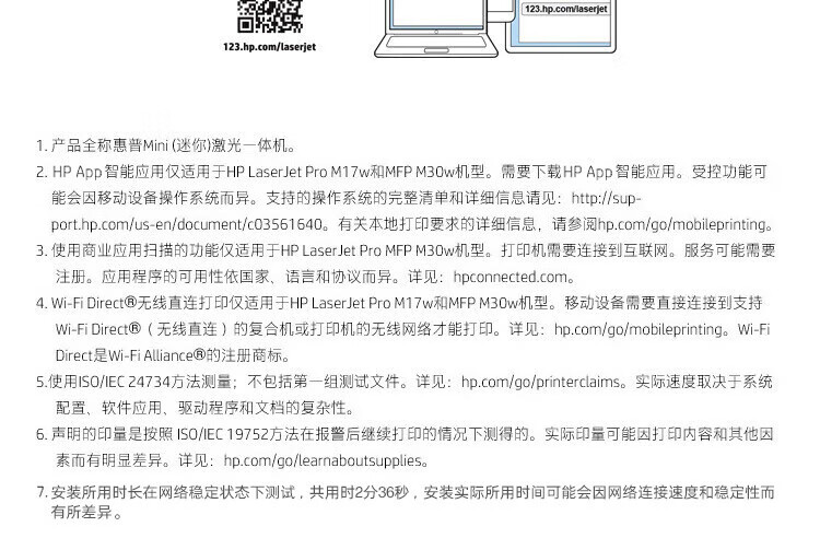 电脑、办公  > 办公设备  > 激光打印机  >  惠普/HP  >  惠普(HP)Mini M30w 黑白激光打印机学生家用无线多功能一体机 ( 体积小巧 、复印、扫描) LaserJet Pro MFP M30w/台