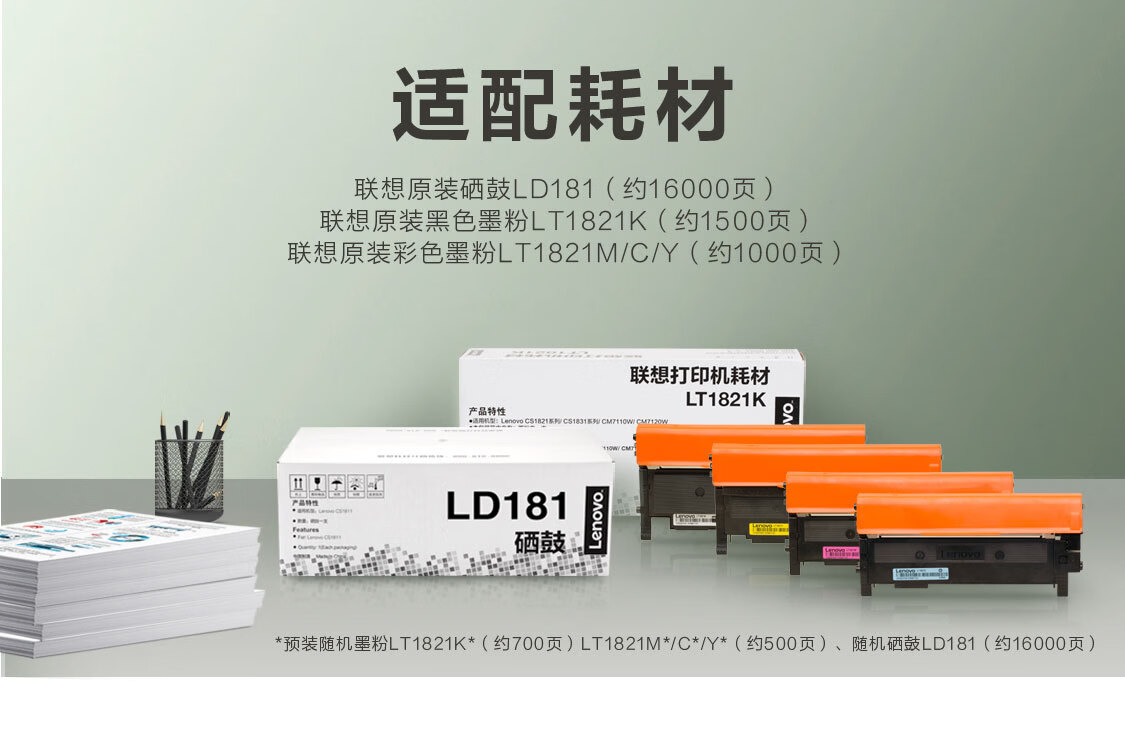 电脑、办公  > 办公设备  > 激光打印机  >  联想/ThinkBook  >  联想(Lenovo)至像CS1821W 彩色激光打印机 办公家用学习 无线+有线网络打印 CS1821W/台