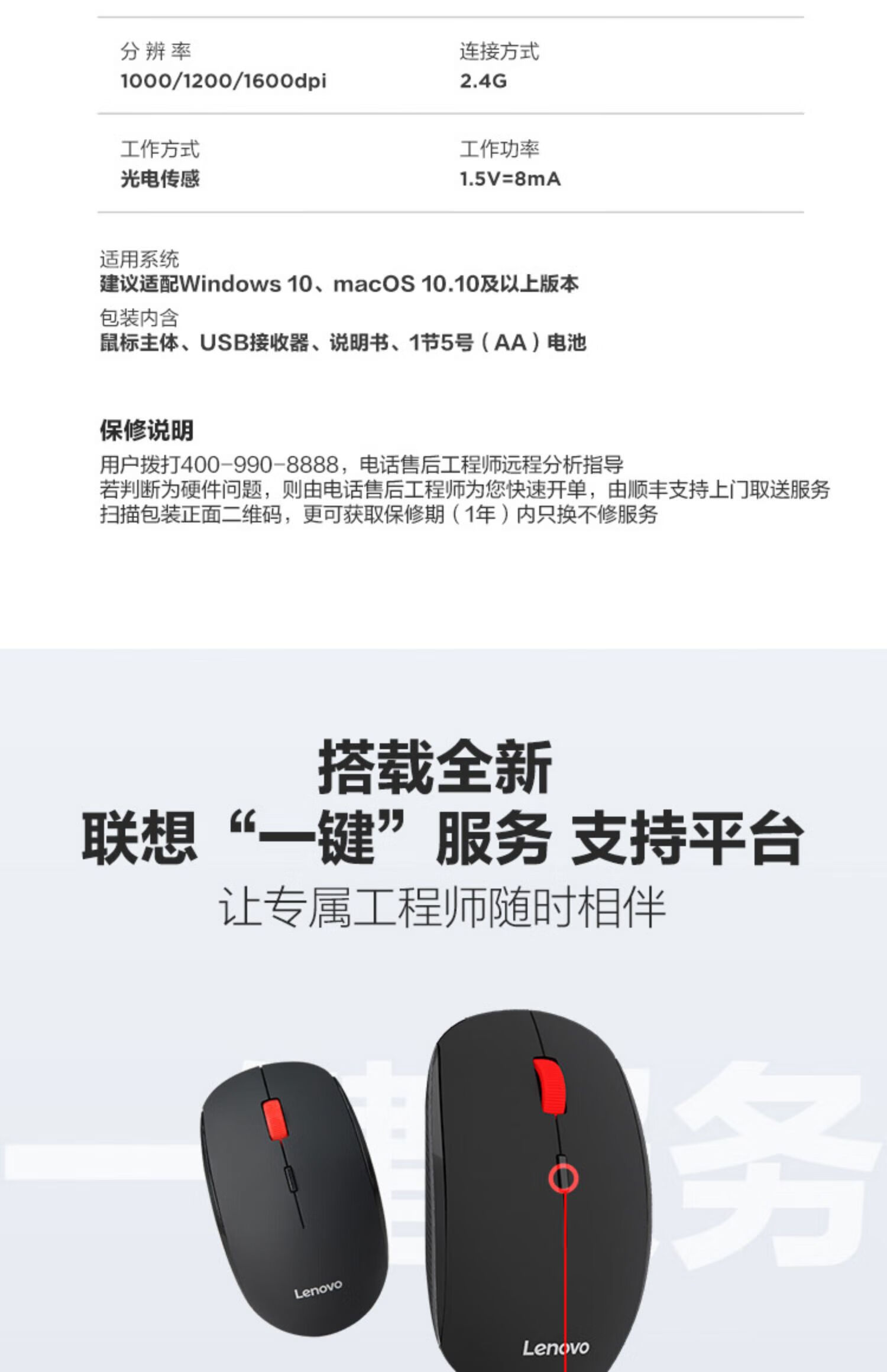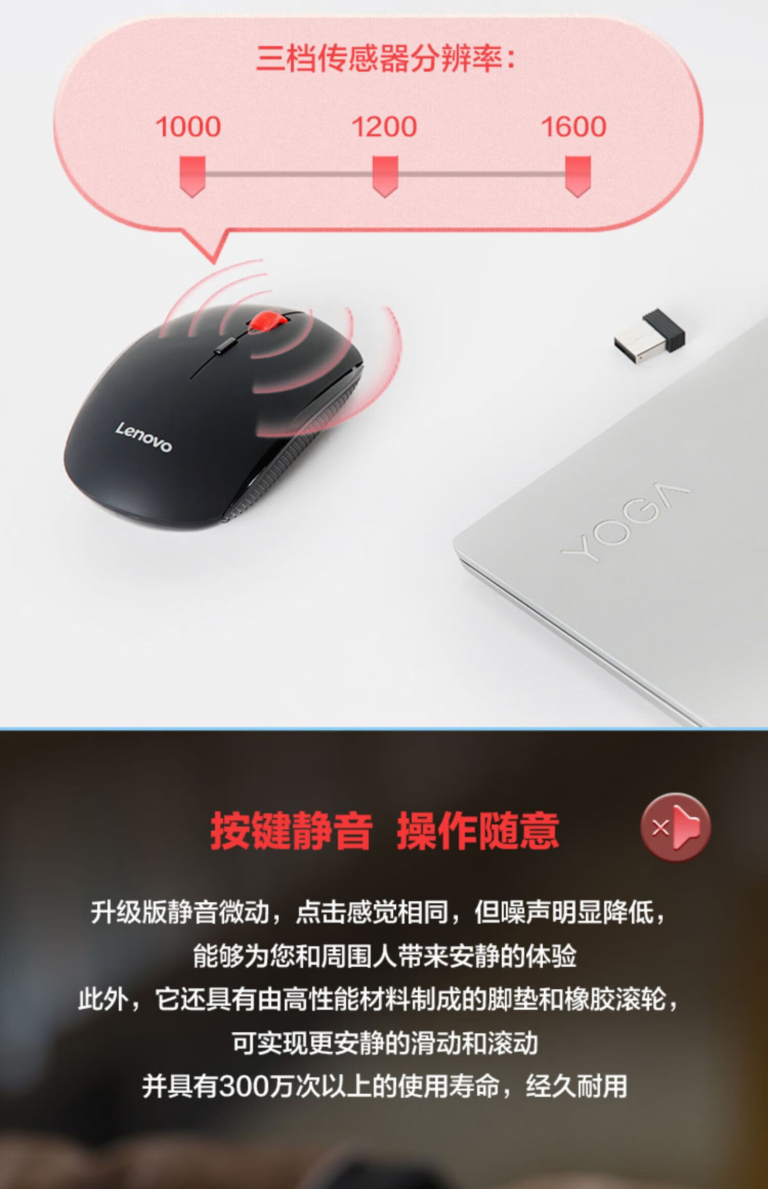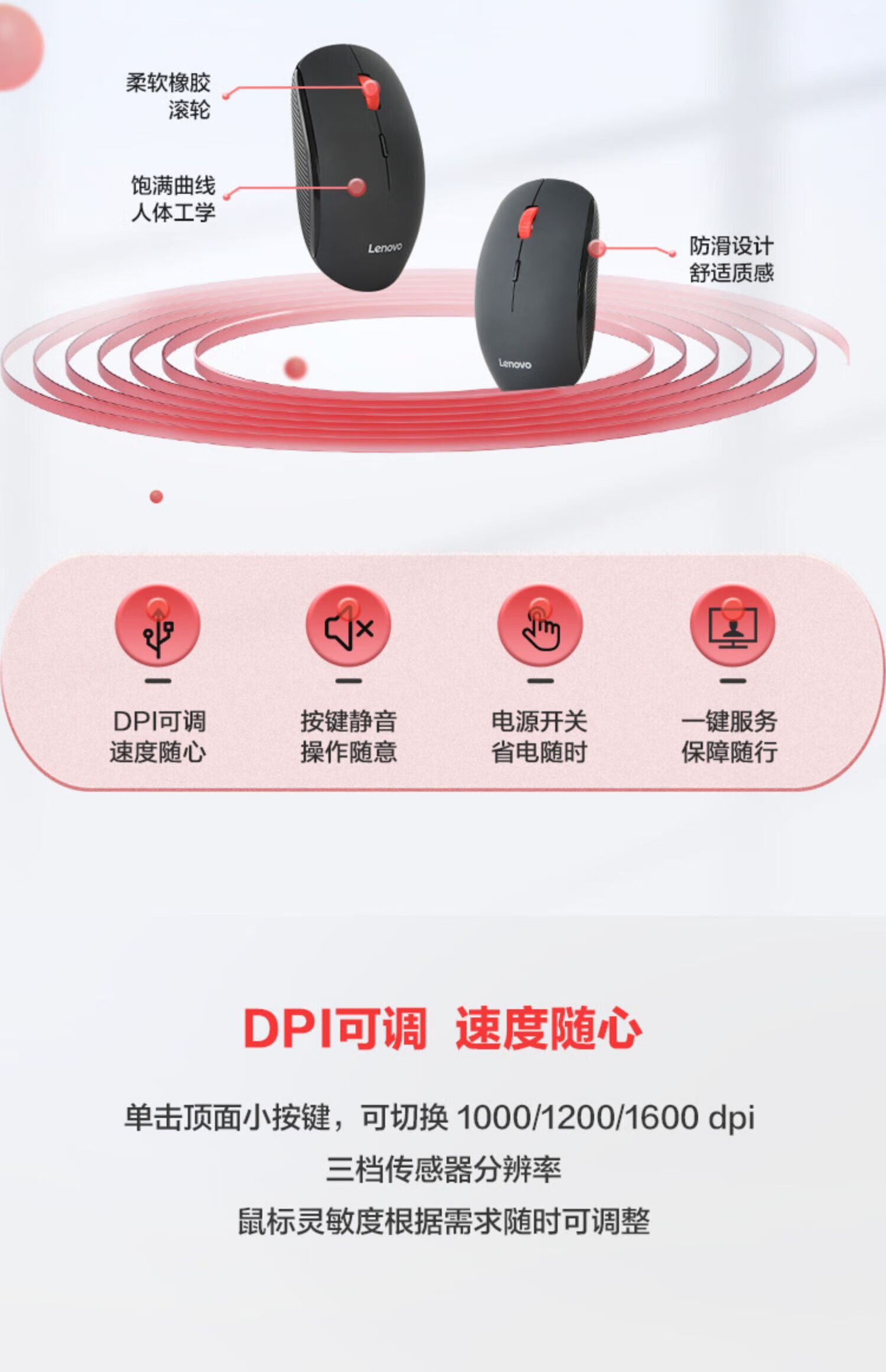• 商品名称:联想(Lenovo)无线静音一键服务鼠标 静音按键 经久耐用 可调节DPI N911S 黑色 M26/个