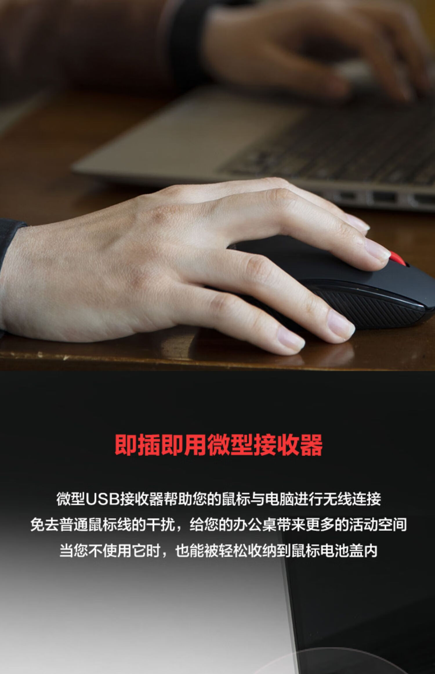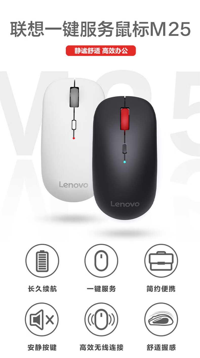 电脑、办公  > 外设产品  > 鼠标  >  联想/ThinkBook  >  联想(Lenovo)无线静音一键服务鼠标 静音按键 经久耐用 可调节DPI N911S 黑色 M26/个