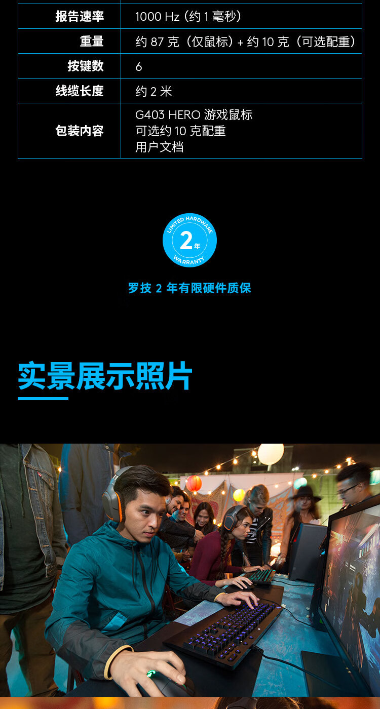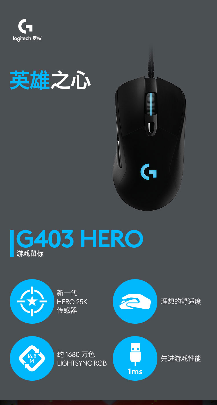 • 商品名称:罗技(Logitech)G403 HERO游戏鼠标 RGB鼠标 吃鸡鼠标 绝地求生 赛博朋克 FPS压枪怪 G403 HERO升级版 G403/个