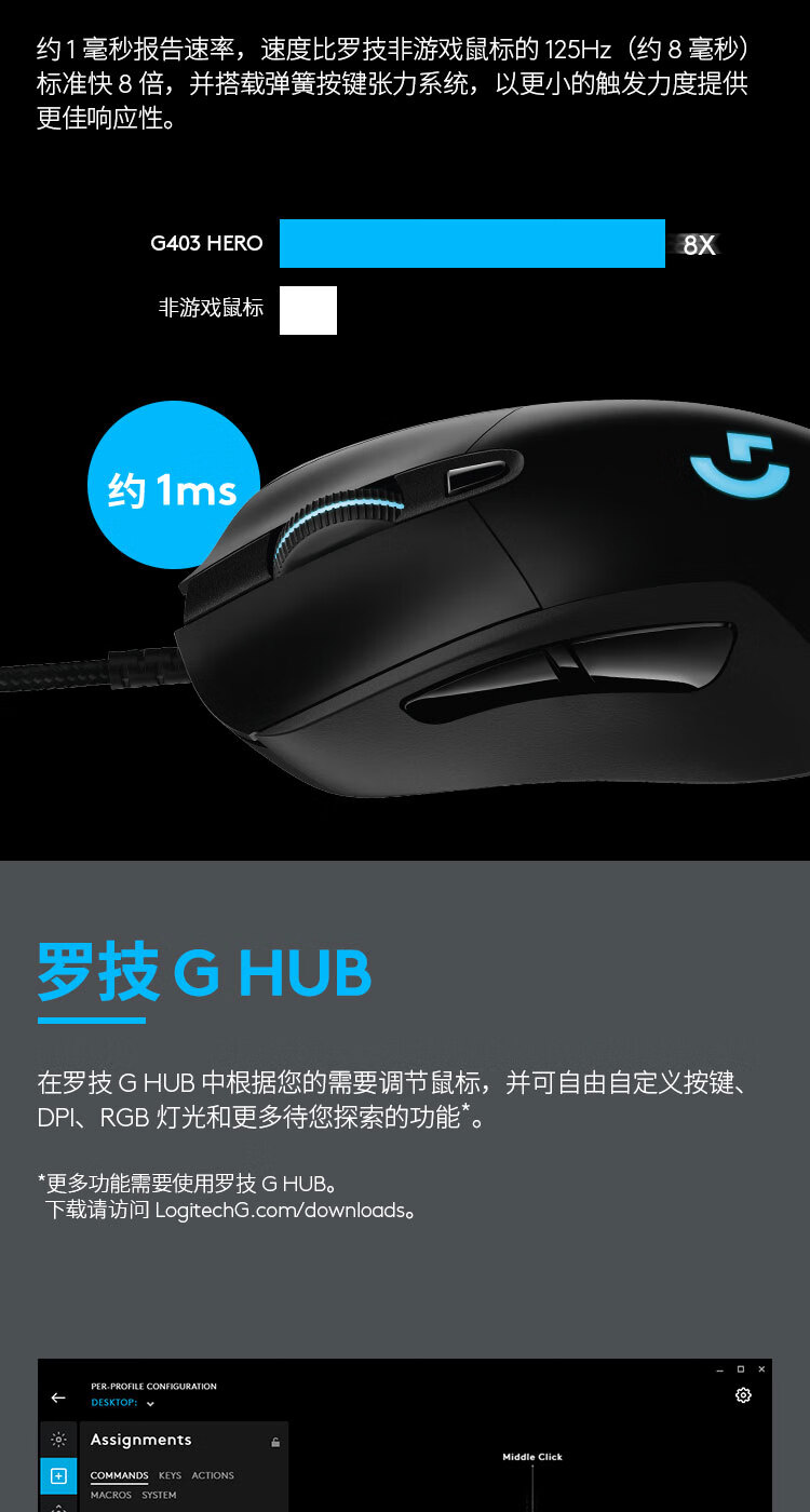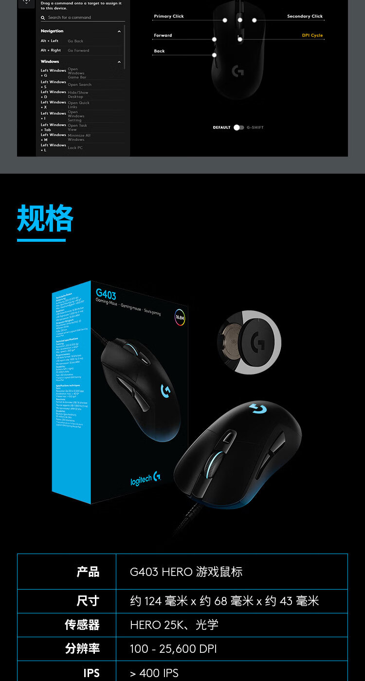 商品名称: 罗技(Logitech)G403 HERO游戏鼠标 RGB鼠标 吃鸡鼠标 绝地求生 赛博朋克 FPS压枪怪 G403 HERO升级版 G403/个