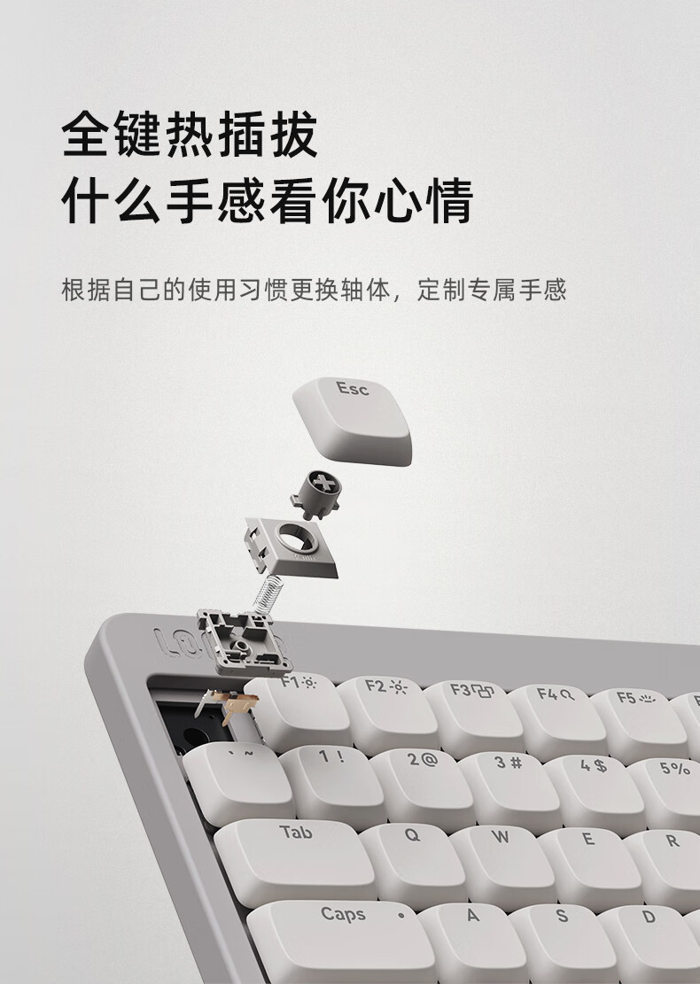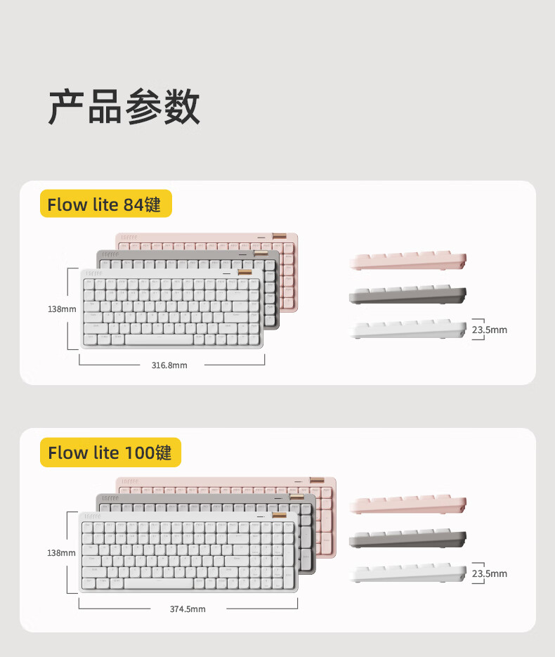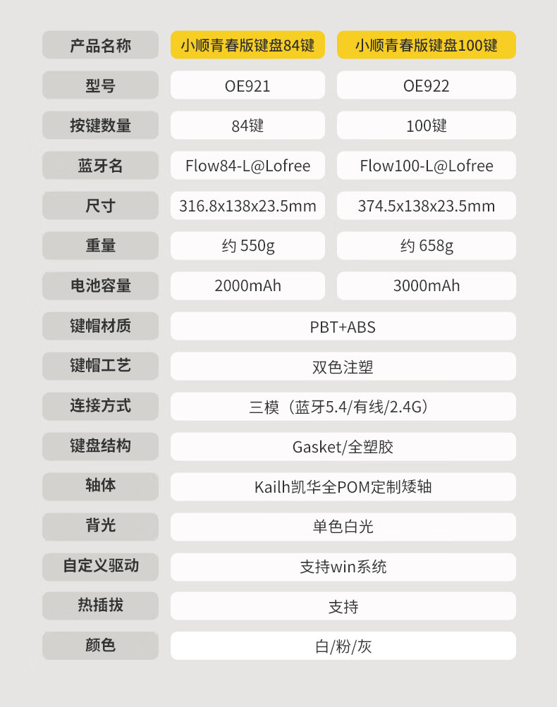 • 商品名称:洛斐(Lofree)小顺青春版84键无线机械键盘矮轴三模Gasket键盘 灰色轻灵 OE921/把