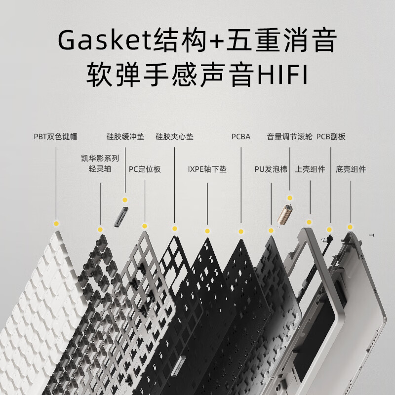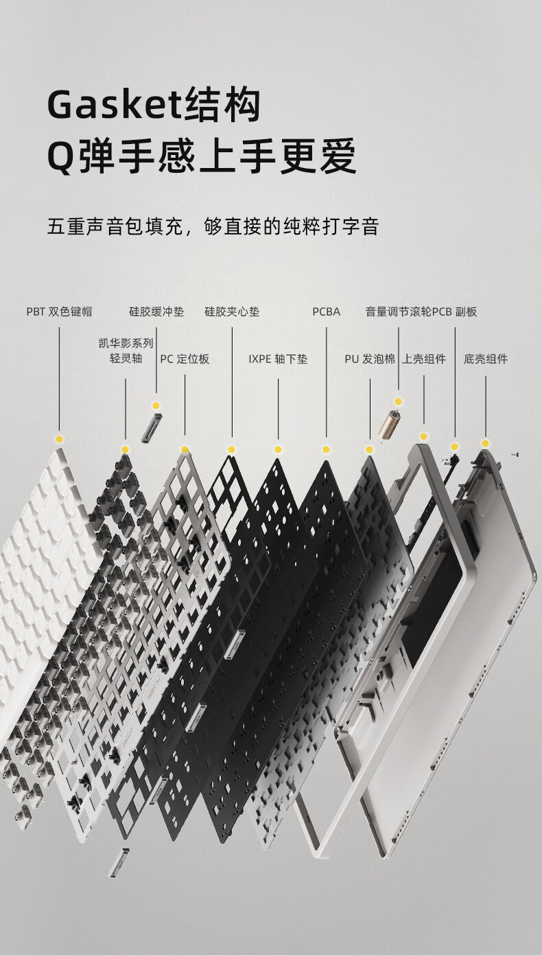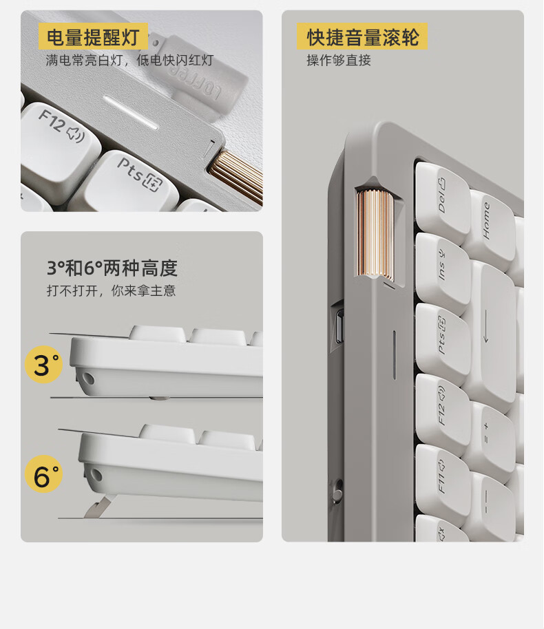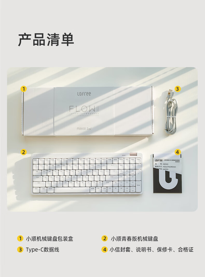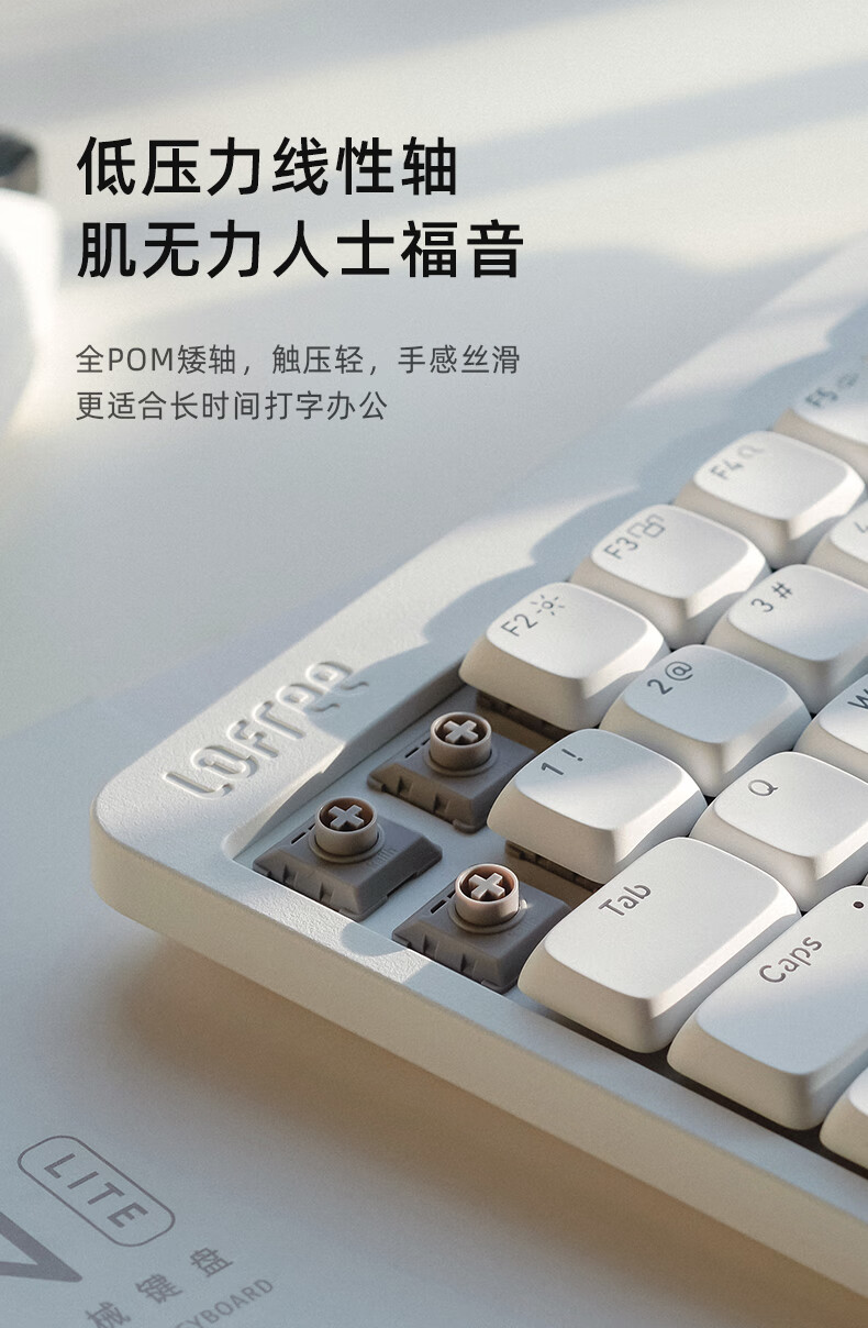 • 商品名称:洛斐(Lofree)小顺青春版100键无线机械键盘矮轴三模Gasket键盘 灰色轻灵 OE922/把