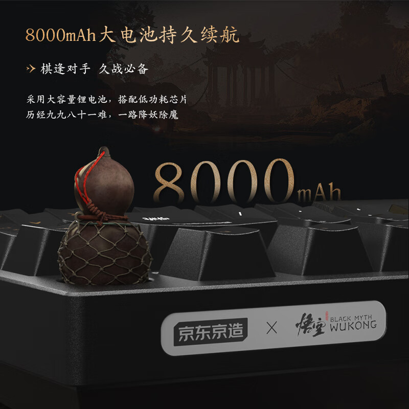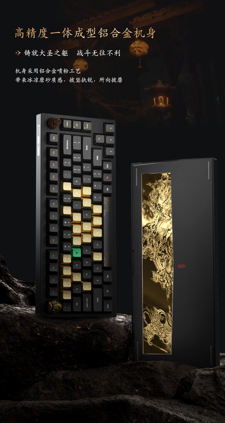 商品名称: 京东京造黑神话悟空联名键盘《墨染乾坤》限量收藏版 铝坨坨三模机械键盘 金粉轴 游戏电竞 送男友礼物 Wukong/把