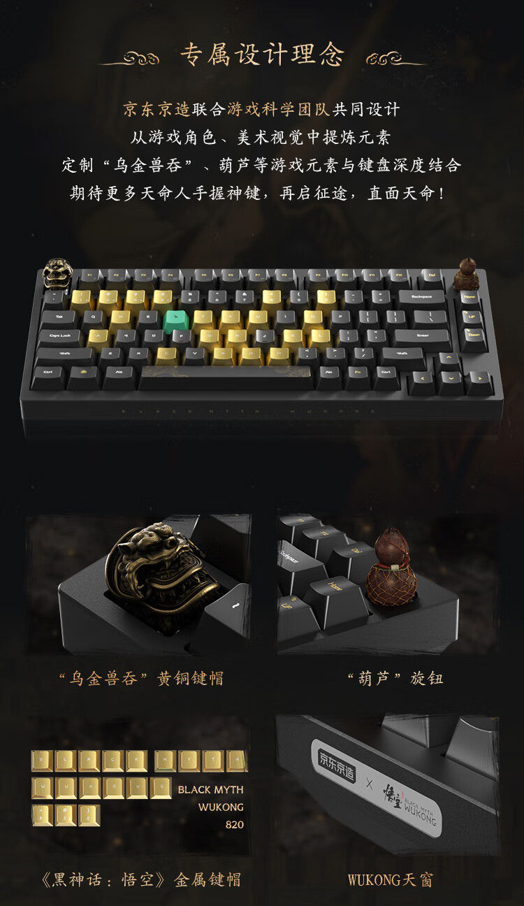 京东京造黑神话悟空联名键盘《墨染乾坤》限量收藏版 铝坨坨三模机械键盘 金粉轴 游戏电竞 送男友礼物 Wukong/把