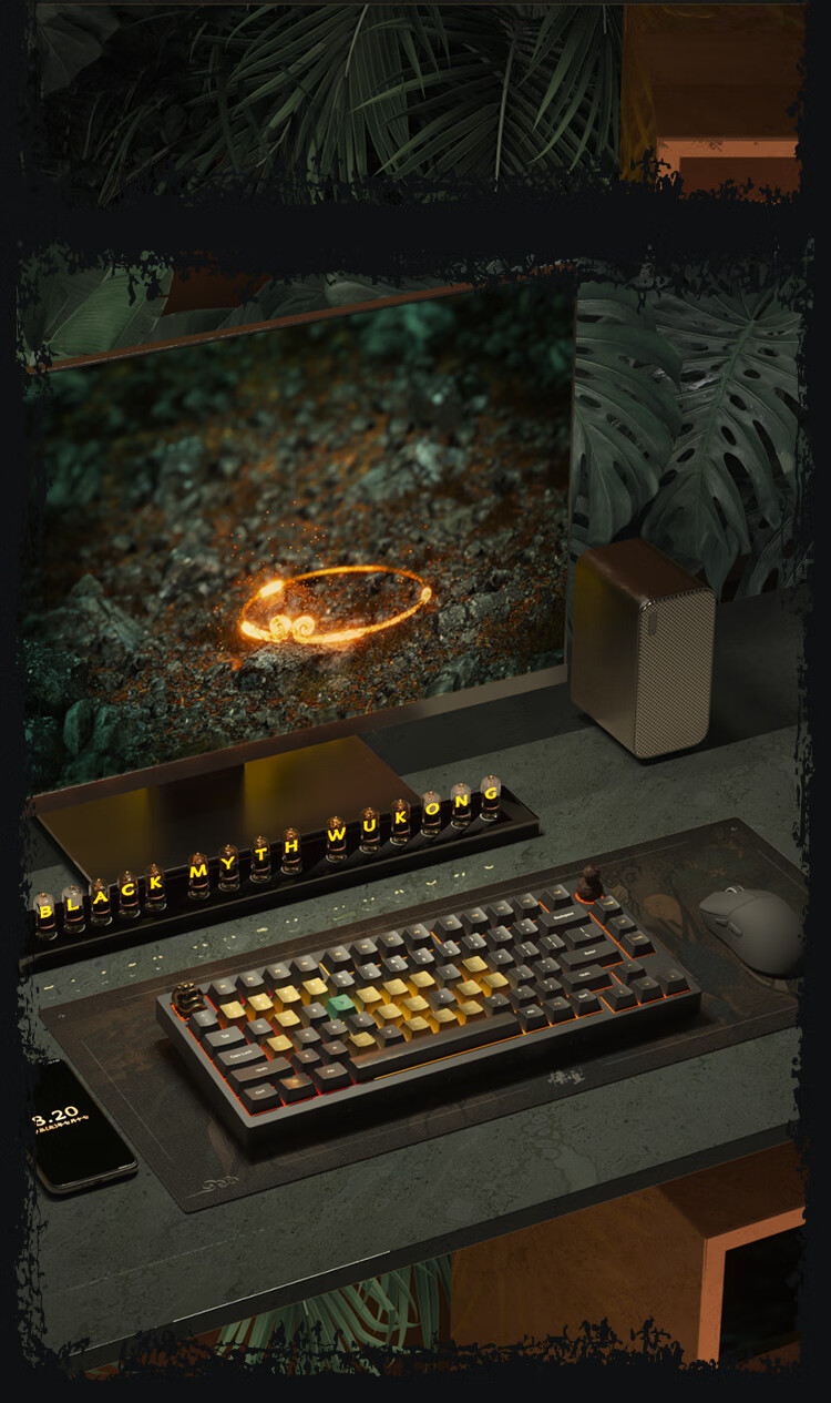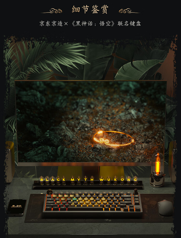 • 商品名称:京东京造黑神话悟空联名键盘《墨染乾坤》限量收藏版 铝坨坨三模机械键盘 金粉轴 游戏电竞 送男友礼物 Wukong/把