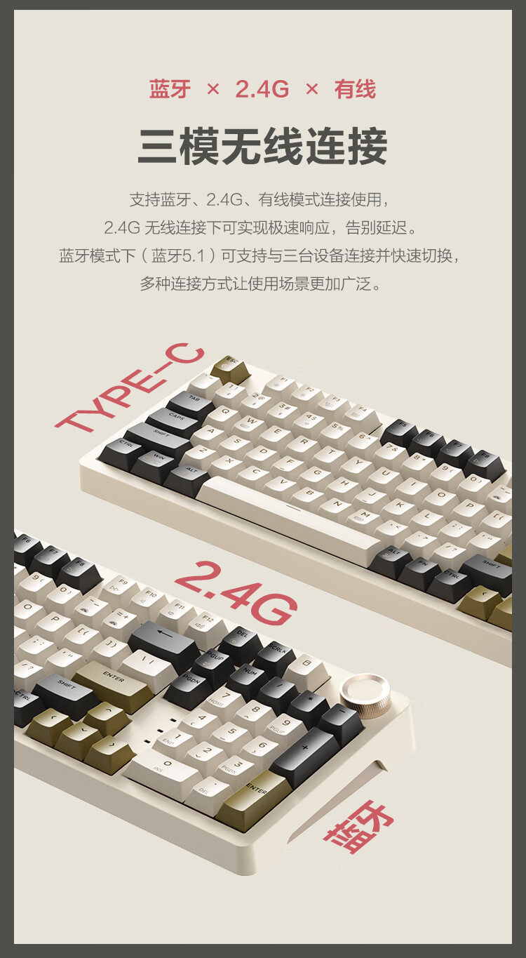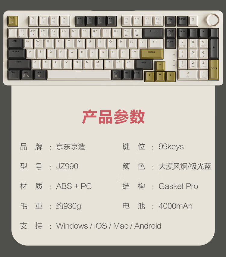 • 商品名称:京东京造JZ990三模无线机械键盘 98配列GasketPro 热插拔客制化办公游戏键盘 瑰夏拿铁轴类红轴 极光蓝 WKB603/个