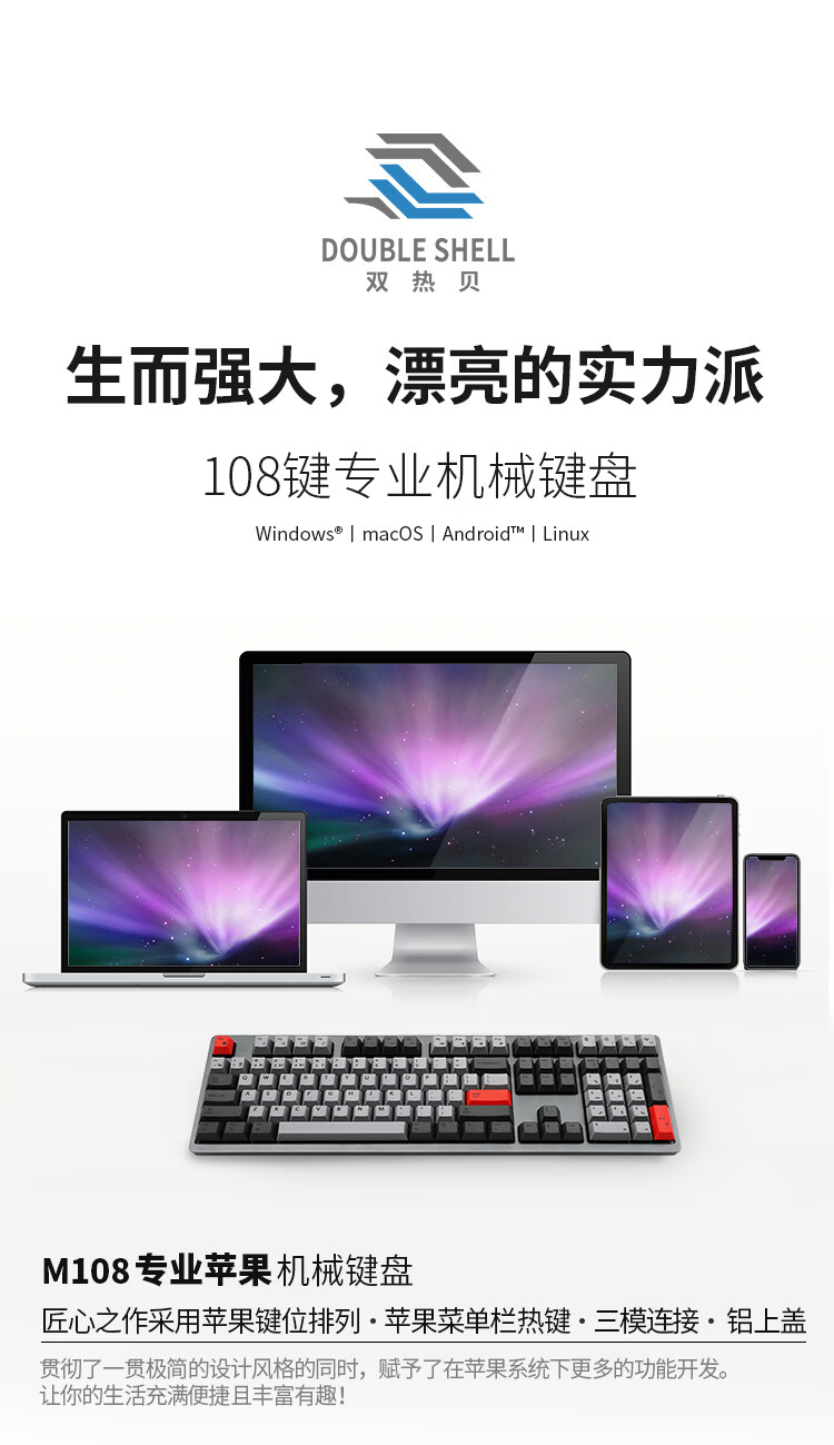 电脑、办公  > 外设产品  > 键盘  >  Double Shell  >  Double ShellM108樱桃cherry静音红轴机械键盘蓝牙无线有线三模电脑办公键盘Mac/Win游戏办公兼容 M108樱桃静音红轴-太空灰/把