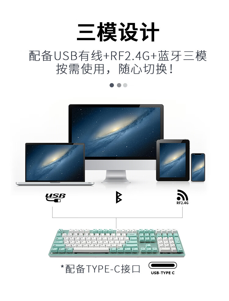 • 商品名称:Double ShellM108樱桃cherry静音红轴机械键盘蓝牙无线有线三模电脑办公键盘Mac/Win游戏办公兼容 M108樱桃静音红轴-太空灰/把