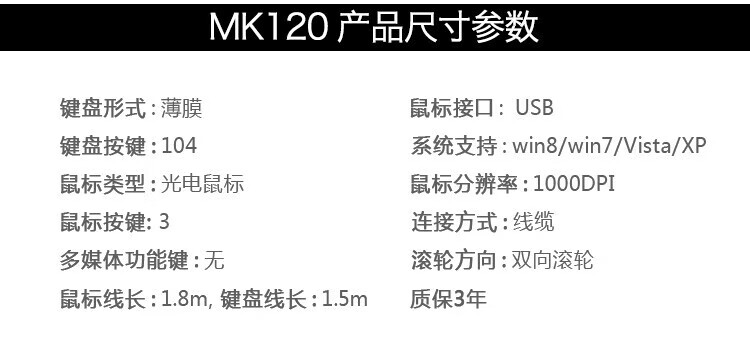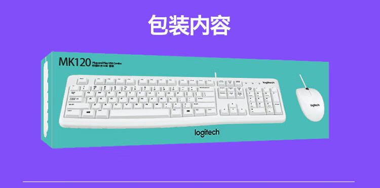 • 商品名称:罗技(Logitech)MK120 有线键鼠套装 USB电脑台式机笔记本商务办公键鼠套装 白色 MK120/套
