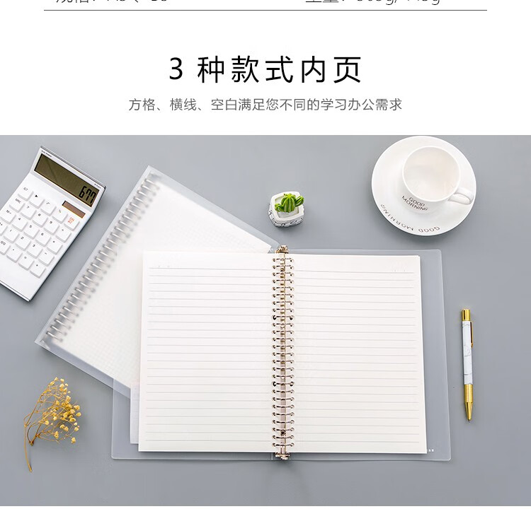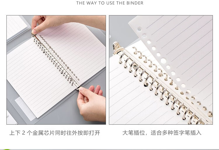 • 商品名称:绿文B5-空白活页本2本装 活页本分页笔记本子可拆卸扣环横线带环金属铁夹学生简约考研错题可拆卸替芯 LV-HYB/本