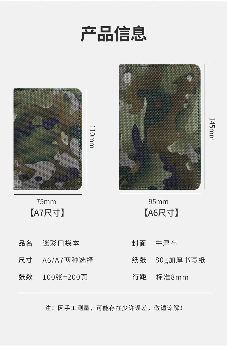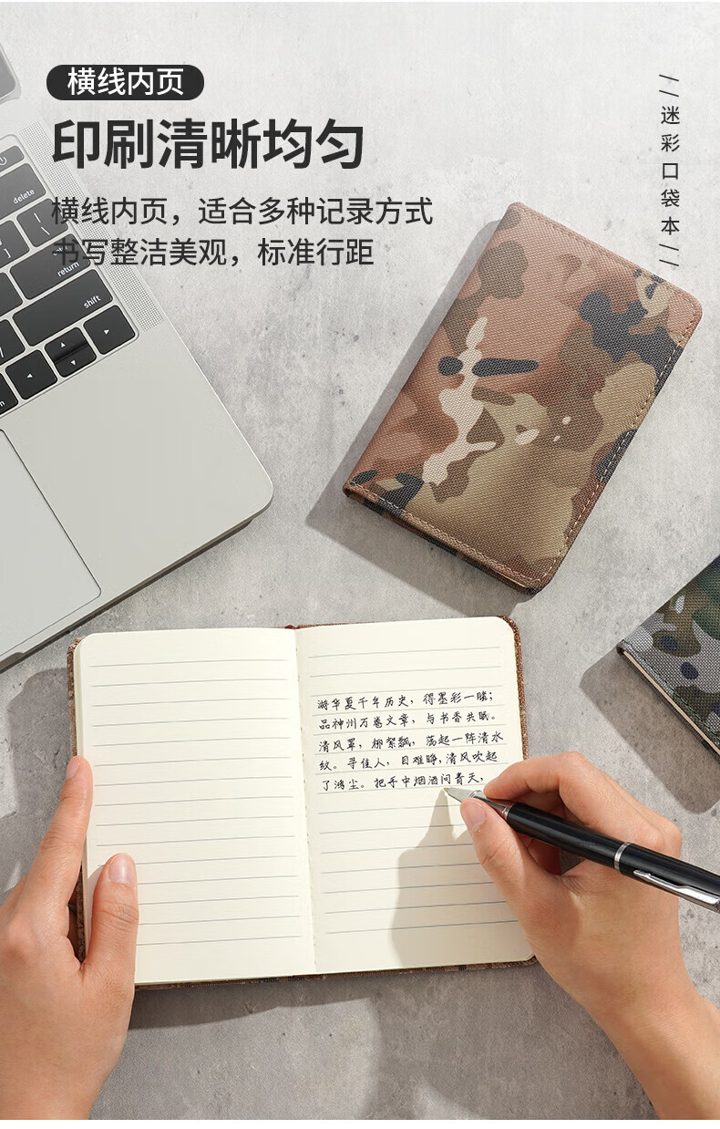 • 商品名称:得力笔记本A7小日记本子随身口袋本星空荒漠迷彩笔记本户外训练教育理论学习记录本兵哥哥礼物记事本 笔记本A7小日记本子随身口袋本星空荒漠迷彩笔记本户外训练教育理论学习记录本兵哥哥礼物记事本/本