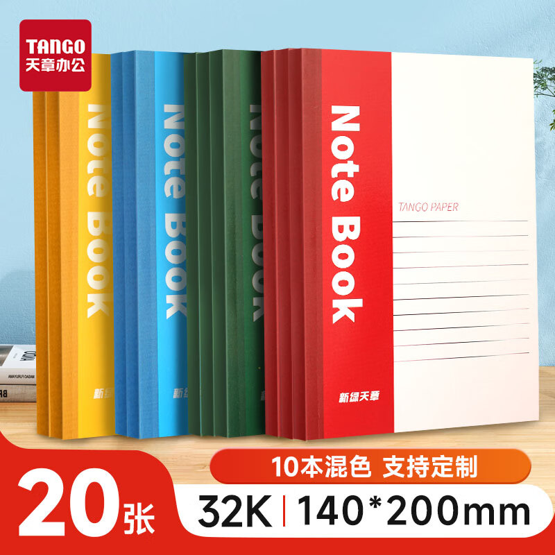 • 商品名称:天章 (TANGO)32K软抄本笔记本记事本子 日记办公会议本写作纪要错题练习本 20张/10本混色 学习办公用品 办公软抄记事本32K/20张/本