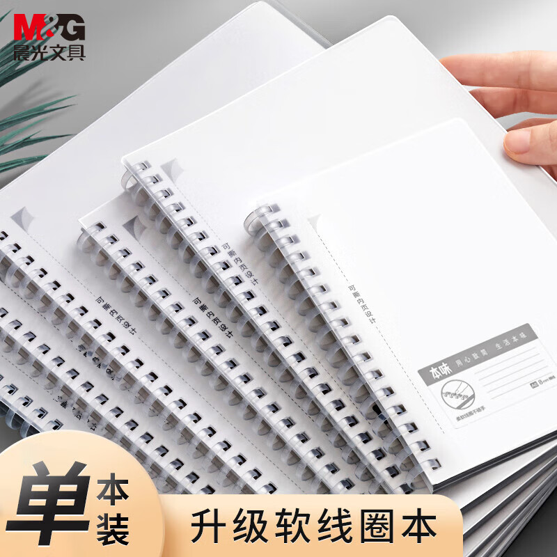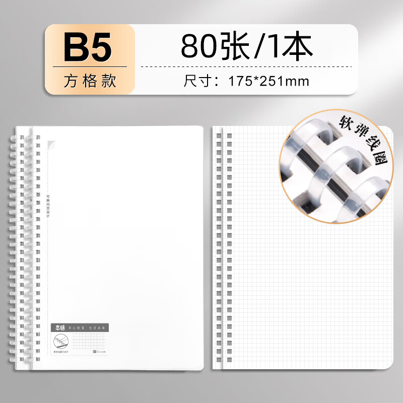 包装清单: 晨光(M&G)文具b5/80张升级软线圈本螺旋本 学生记事本日记本手账本笔记本子文具 方格款单本装XB5857