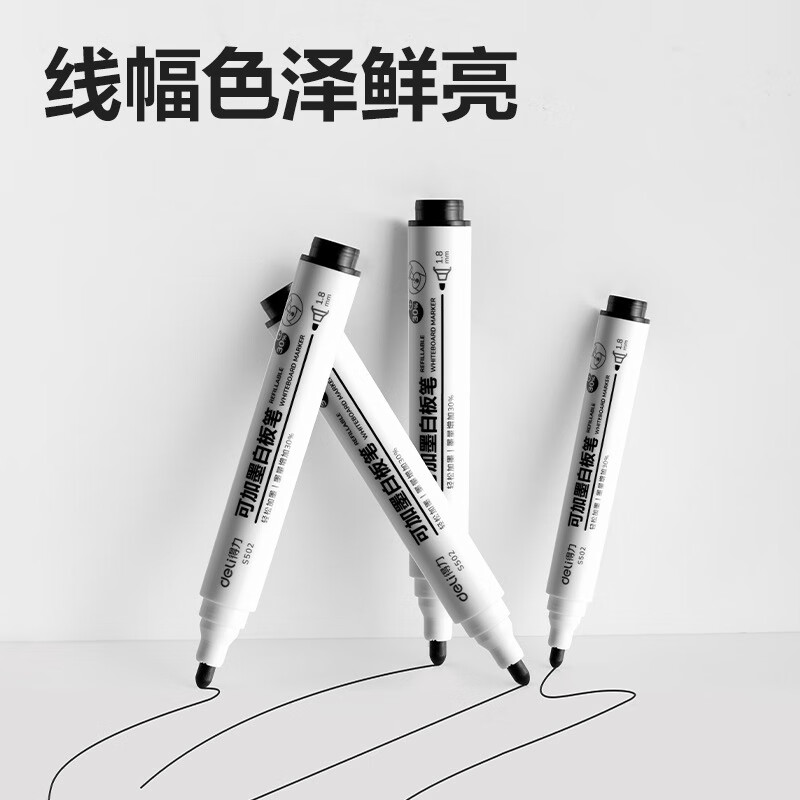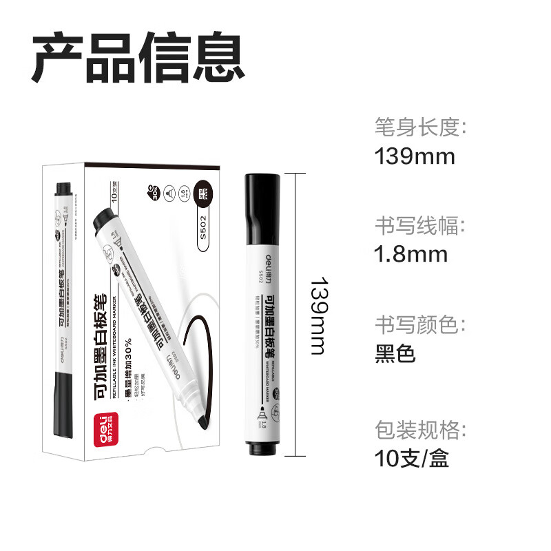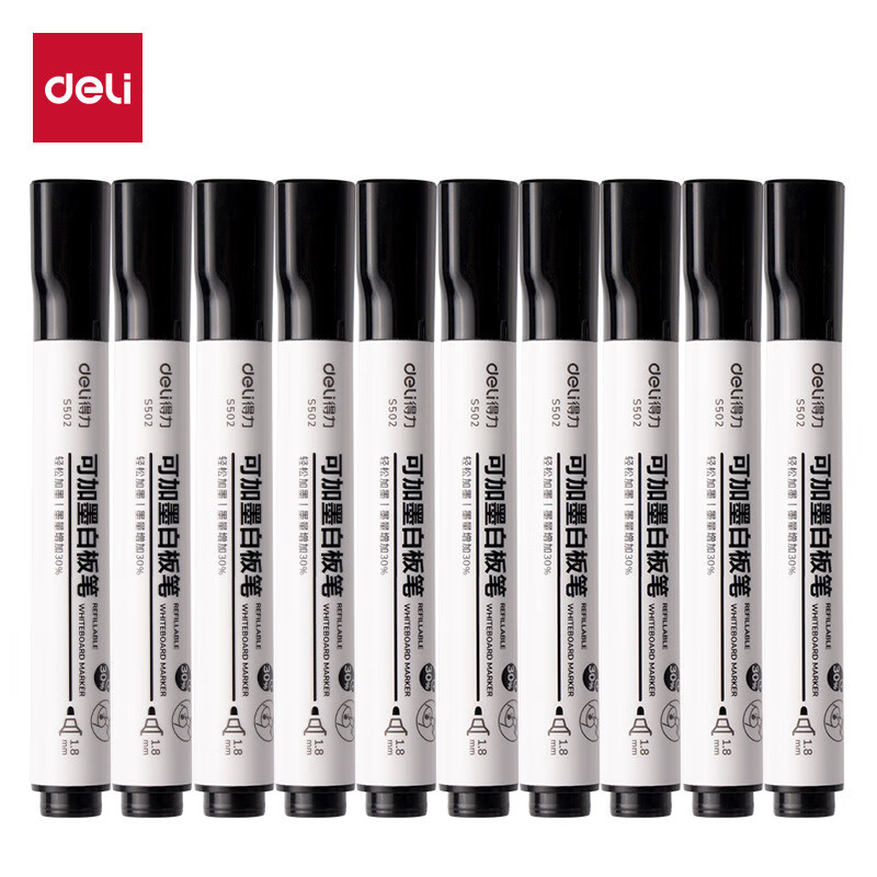 • 商品名称:得力白板笔可加墨水可擦白板专用笔红蓝黑色加墨水性可加墨白板 S502蓝色可加墨白板笔10支装 S502/个