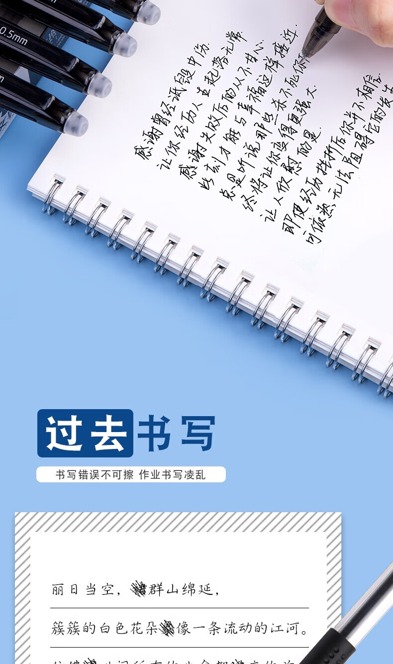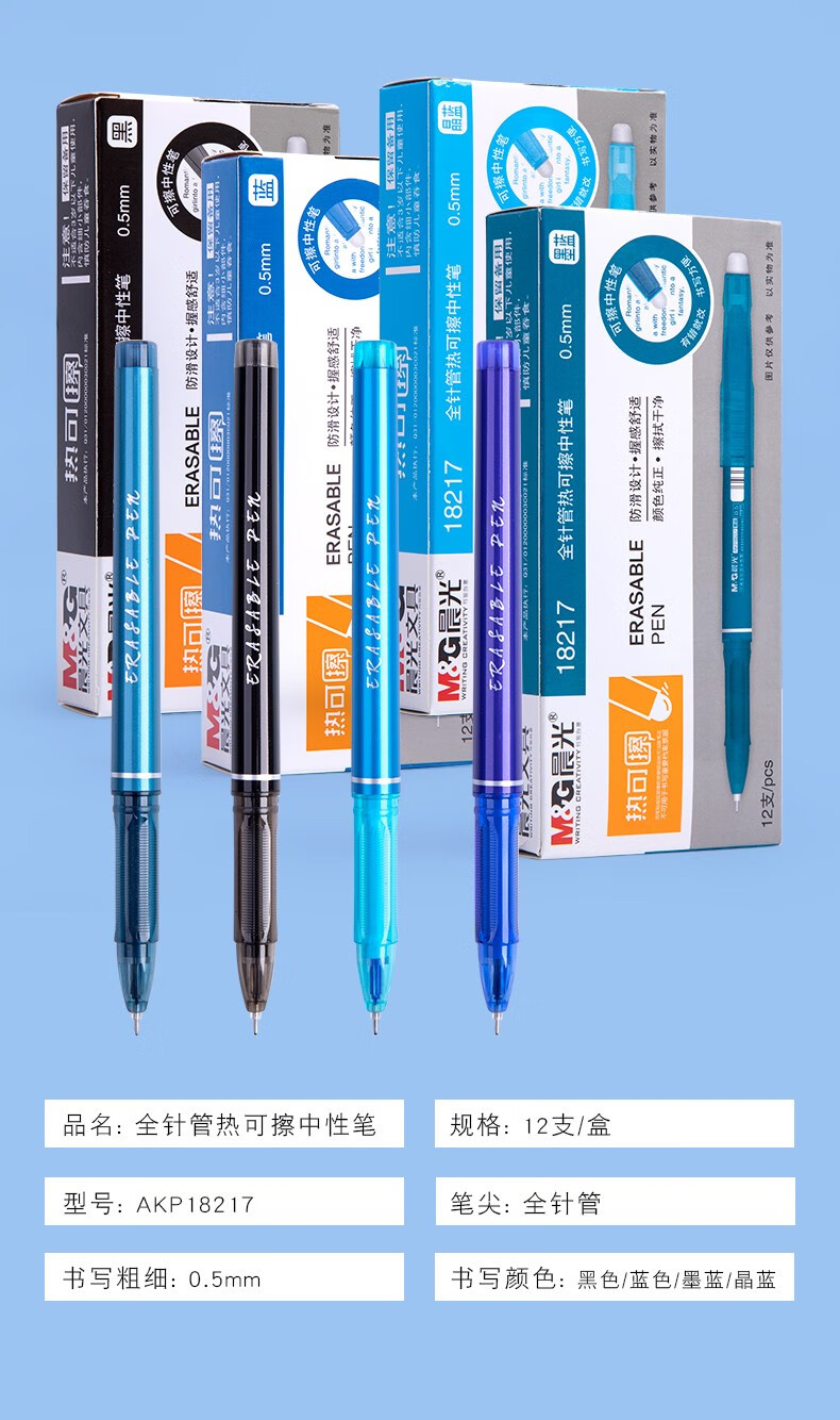 • 商品名称:晨光(M&G)可擦中性笔0.5mm热可擦中性笔芯签字水笔水性黑色可檫摩擦魔摩磨易檫易 黑色 12支装AKP18217A 18217/支