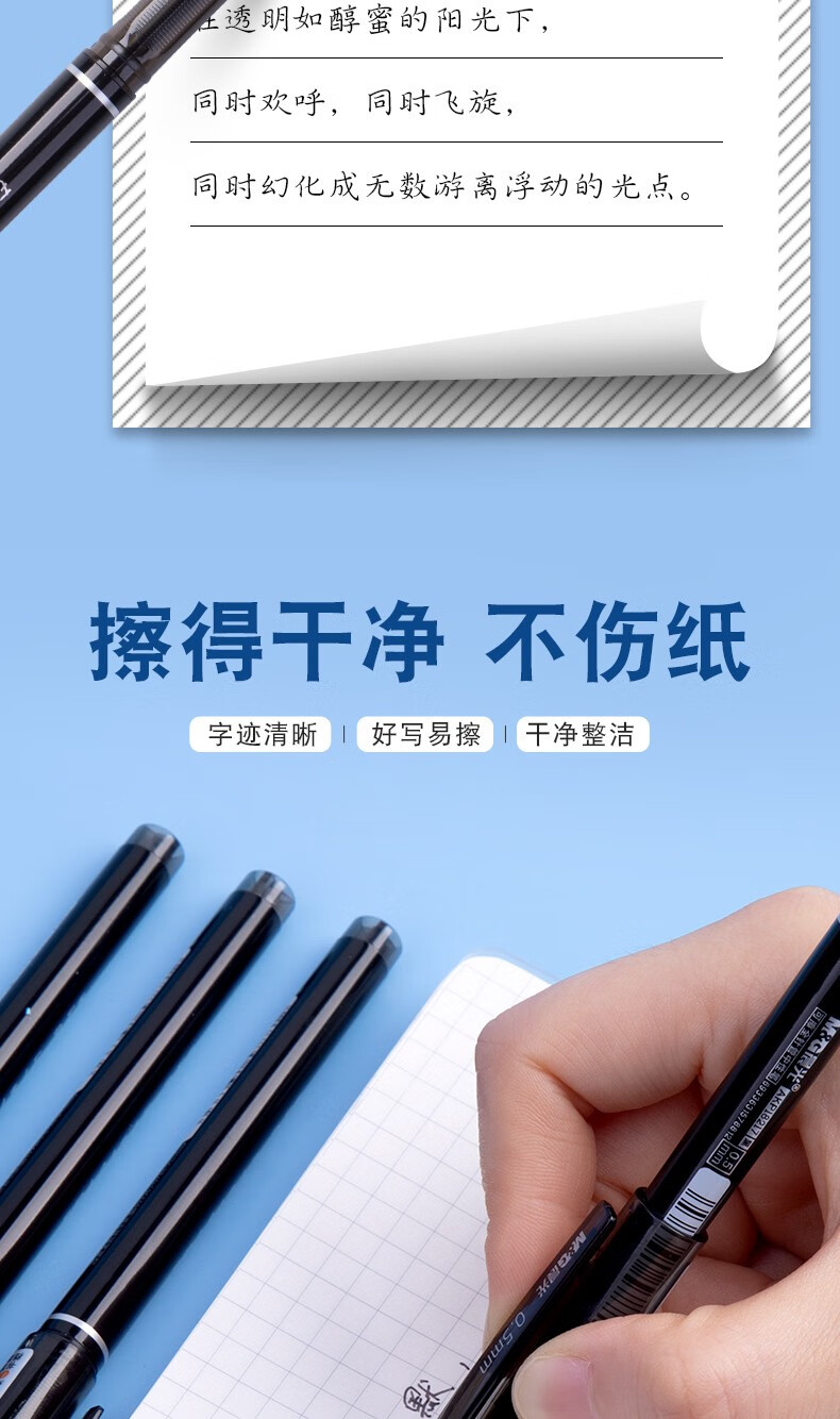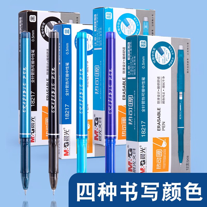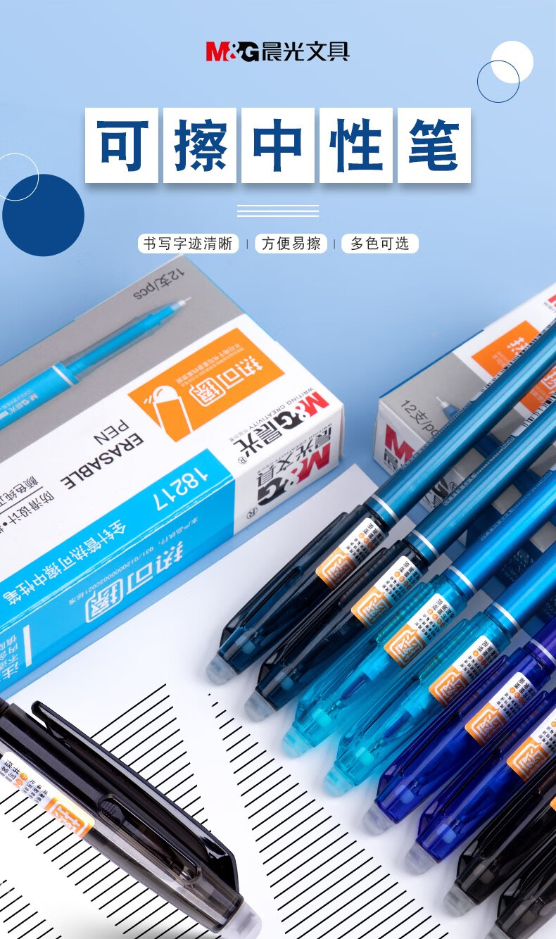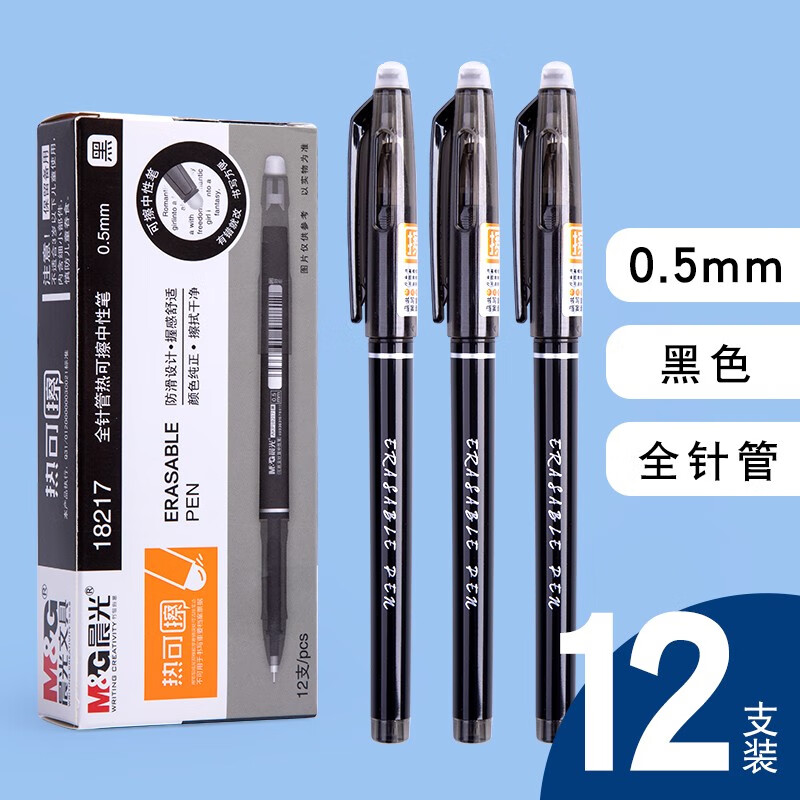 • 商品名称:晨光(M&G)可擦中性笔0.5mm热可擦中性笔芯签字水笔水性黑色可檫摩擦魔摩磨易檫易 黑色 12支装AKP18217A 18217/支