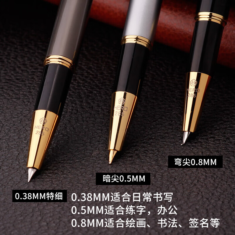英雄(HERO)钢笔285 暗尖0.8mm美工弯尖 签字笔书法练字笔男女专用手绘笔 弯尖黑色 礼盒装+墨水 285/盒