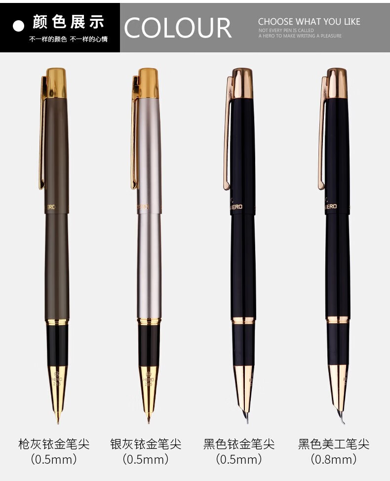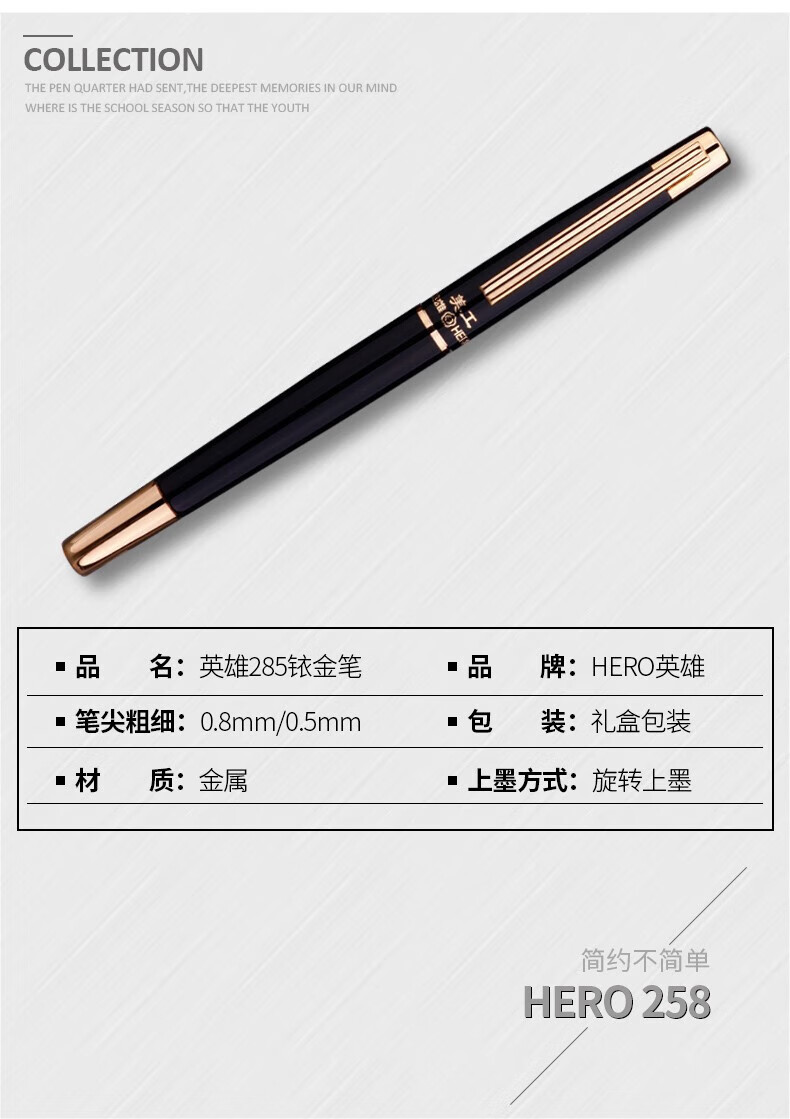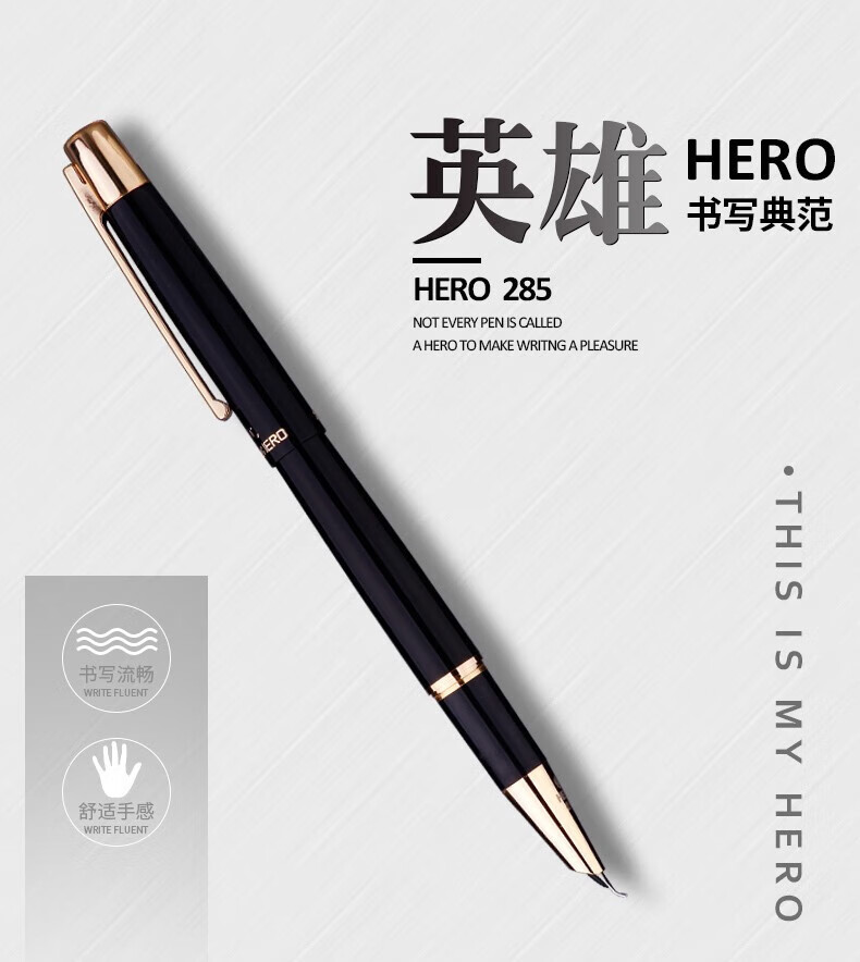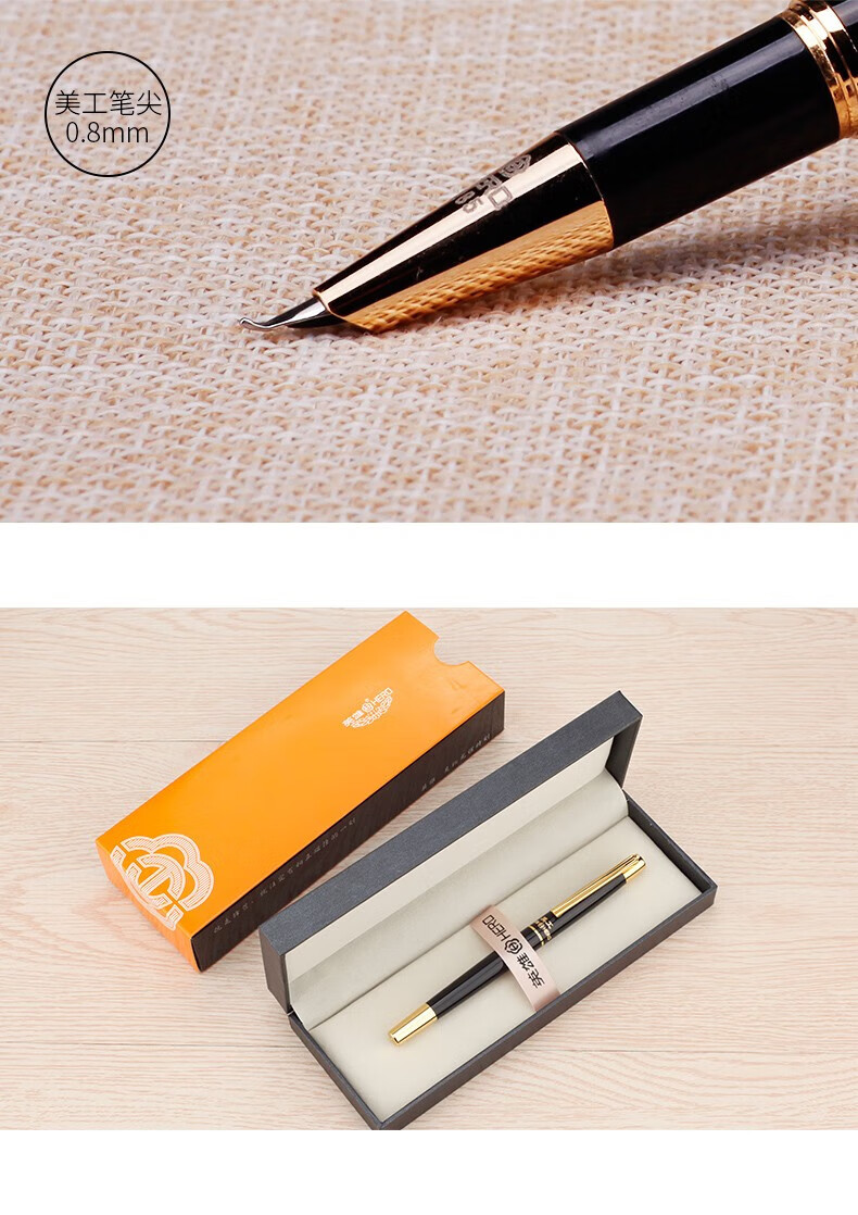 • 商品名称:英雄(HERO)钢笔285 暗尖0.8mm美工弯尖 签字笔书法练字笔男女专用手绘笔 弯尖黑色 礼盒装+墨水 285/盒