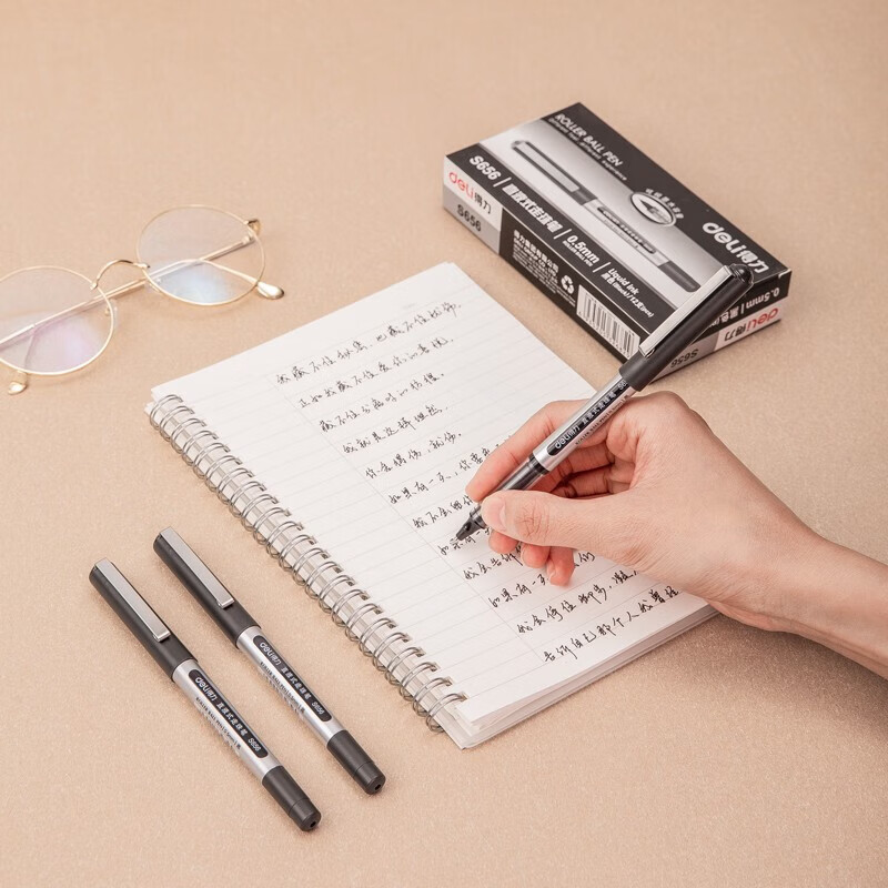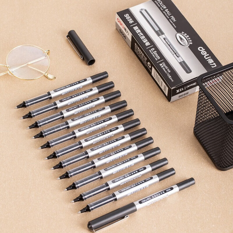 电脑、办公  > 文具  > 笔类  >  得力/deli  >  得力S656 直液式走珠签字笔 子弹头水性笔 0.5mm商务办公用经典黑色中性笔 3盒装 12支/盒 S656 /个