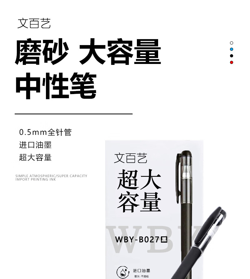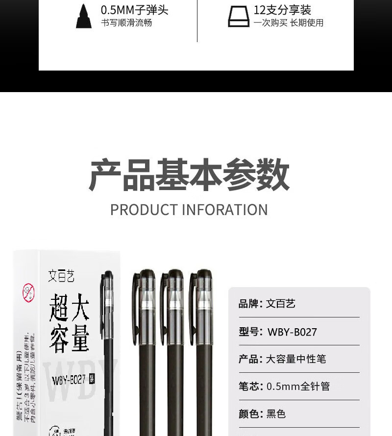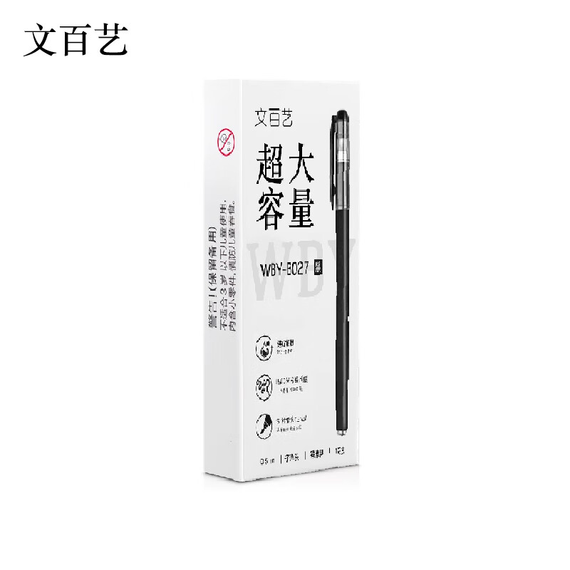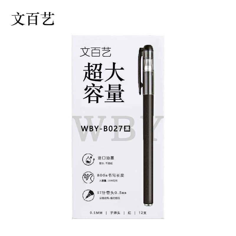 商品名称: 文百艺 WBY-B027 中性笔 12支/盒(计价单位:盒)黑色 WBY-B027/盒